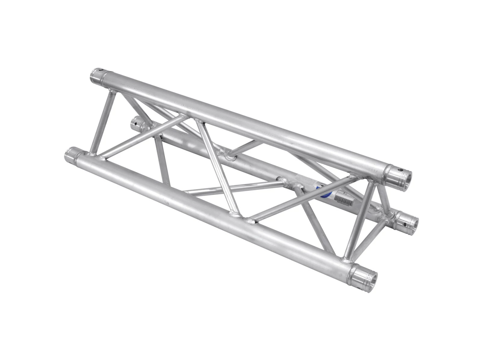 TRILOCK E-GL33 3-point truss systemTRILOCK E-GL33 is a 3-point truss system made of aluminum. The individual elements are connected via three cones, pivots and pins. TRILOCK E-GL33 is made of EN-AW 6082 T6 (AlMgSi1 T6) alloy for high loads. The advantage of the conical connection system is that the cones completely fit into the main chords so that highest load capacity is guaranteed. The Quick-Lock system enables fast, efficient and highly aesthetic assembly when the truss constructions are frequently assembled and dismantled. The three main chords are made of 50 mm aluminum tube with 2 mm wall thickness and offer a good relation between strength and weight. The braces have a diameter of 20 mm with 2 mm wall thickness and provide stability for this truss system. With 290 and 257 mm outer dimensions, TRILOCK E-GL33 is a stable truss system for higher loads and extended durability.This system is mainly designed for intense use in stage installations, fair installations, event installations but also for permanent installations in discotheques and theatres. Its polished surface makes this universal system a real eyecatcher. Due to its wide range of standard system lengths, corners, circles and accessories, this system is highly versatile and offers unlimited design possibilities.The production of this truss system is TUV-monitored. The load table as calculation base can be downloaded from the Internet before buying the product! ALUTRUSS elements are made in Europe and welded by specially trained welders certified by the German SLV association.