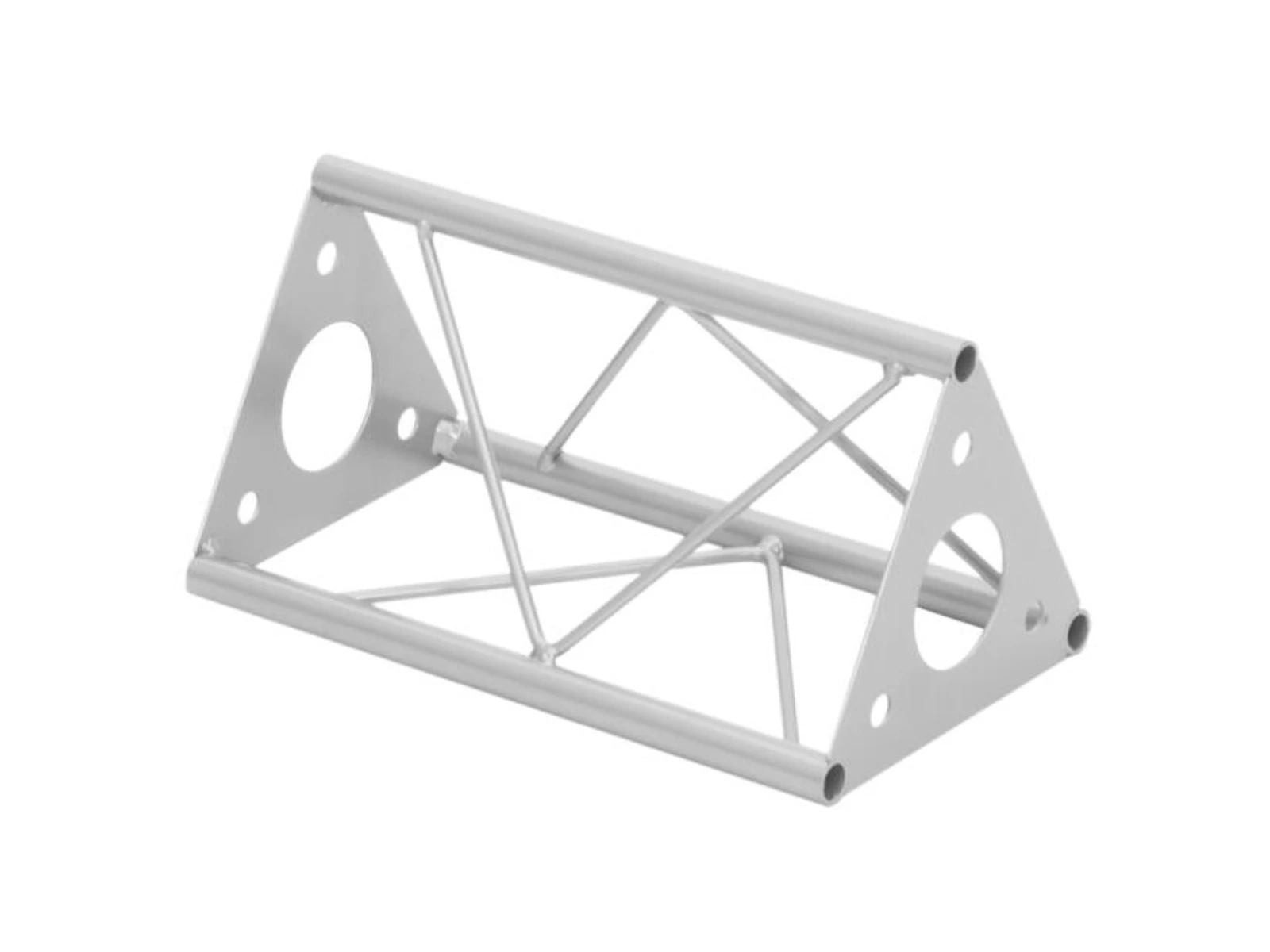 DECOTRUSS 3-point truss systemDECOTRUSS is a 3-point truss system made of steel. The individual elements are connected via three M10 bolts and nuts.The advantage of the bolt connection system is that these bolts and nuts are easily available in case of loosing fasteners.The three main chords are made of 15 mm steel tube with 1.5 mm wall thickness and can only be used for decorative purposes. With its minimal outer dimensions of 150 mm, DECOTRUSS is ideal for creating individual design-elements in decorative areas of private homes, fair booths, shops, discotheques and theatres.This truss system is a mere decoration system convincing by its compact dimensions, low storage requirements and easy transportation.Please note: this truss system must never be combined with other systems!