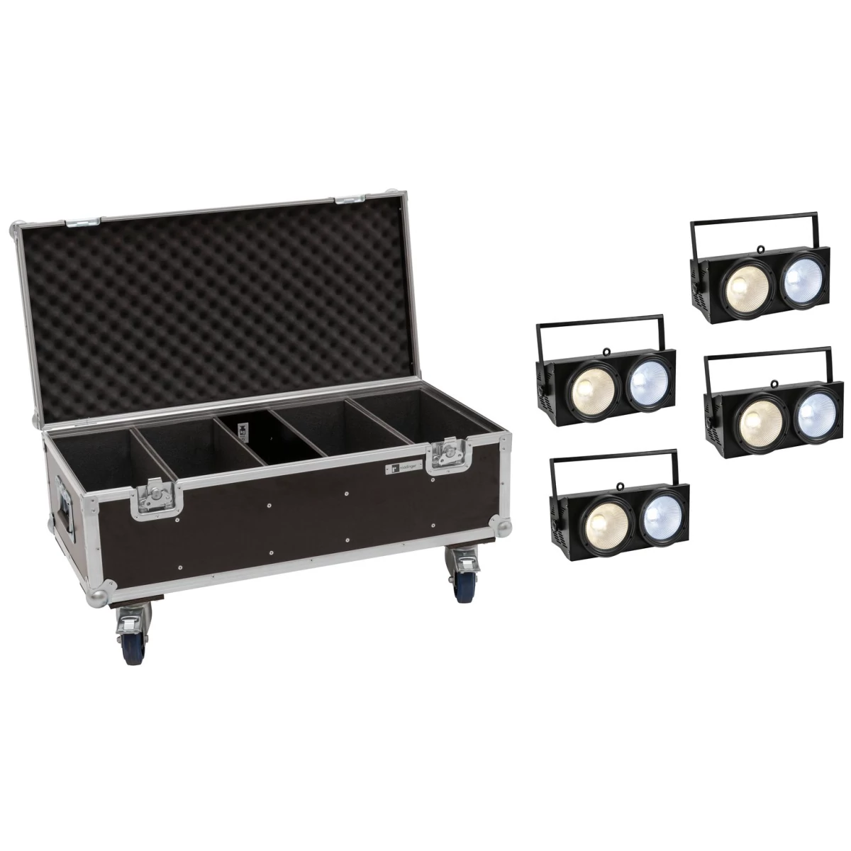 ROADINGER Flightcase 4x Audience Blinder 2x100W LED COB CW/WW with wheels | |