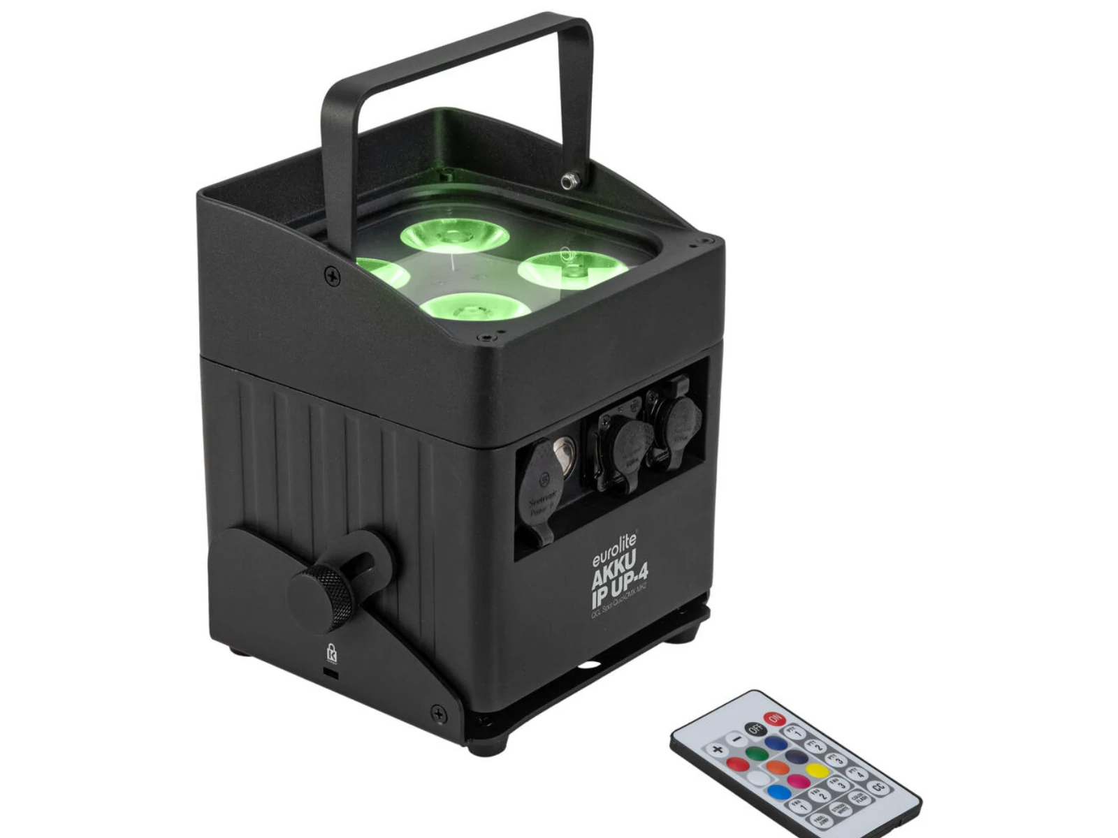 Weather-proof (IP65) battery powered LED uplight with 10W 4in1 LEDs and QuickDMX