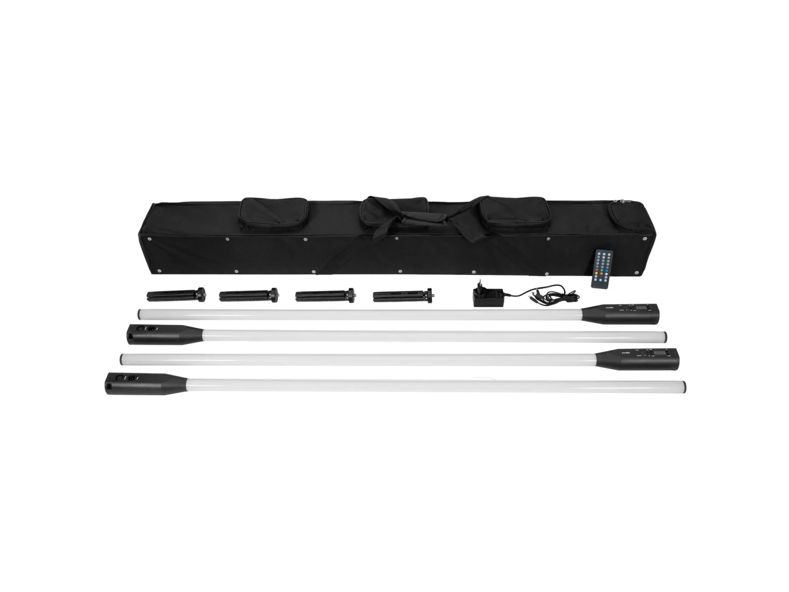 4 battery-powered effect tubes with 32 pixels, AirW wireless system (2.4 GHz), remote control and bag