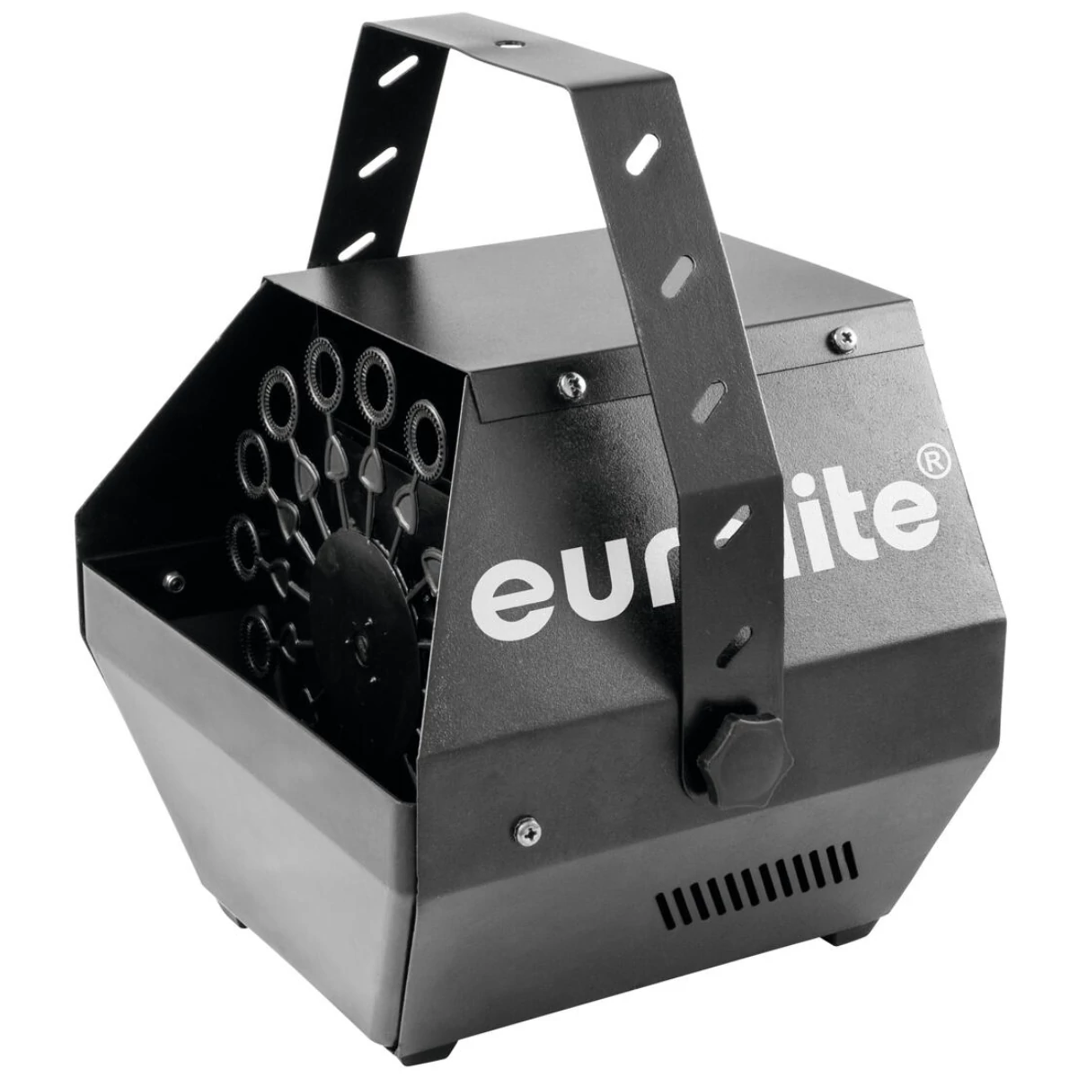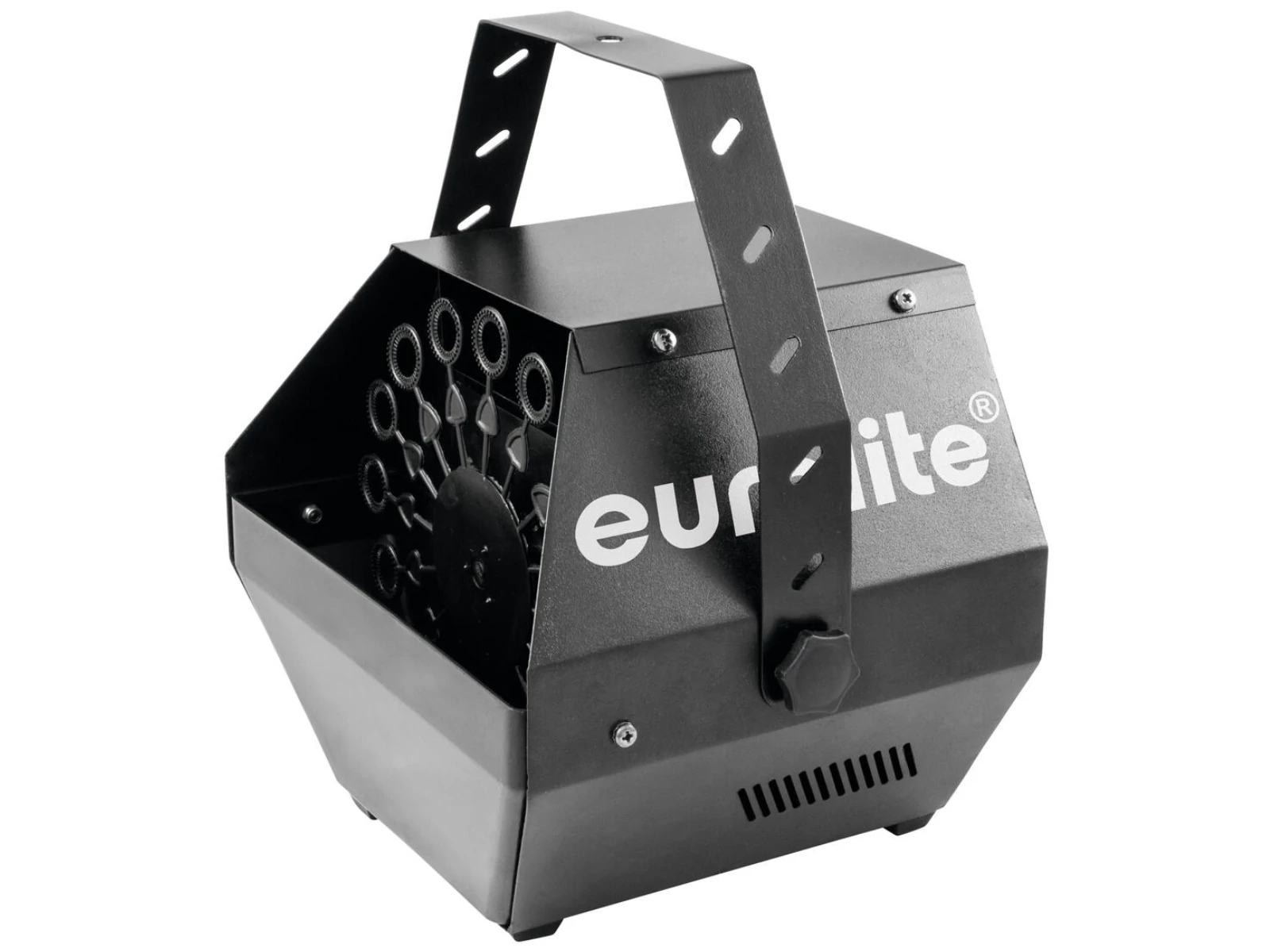 DMX bubble machine for hanging or standing installation