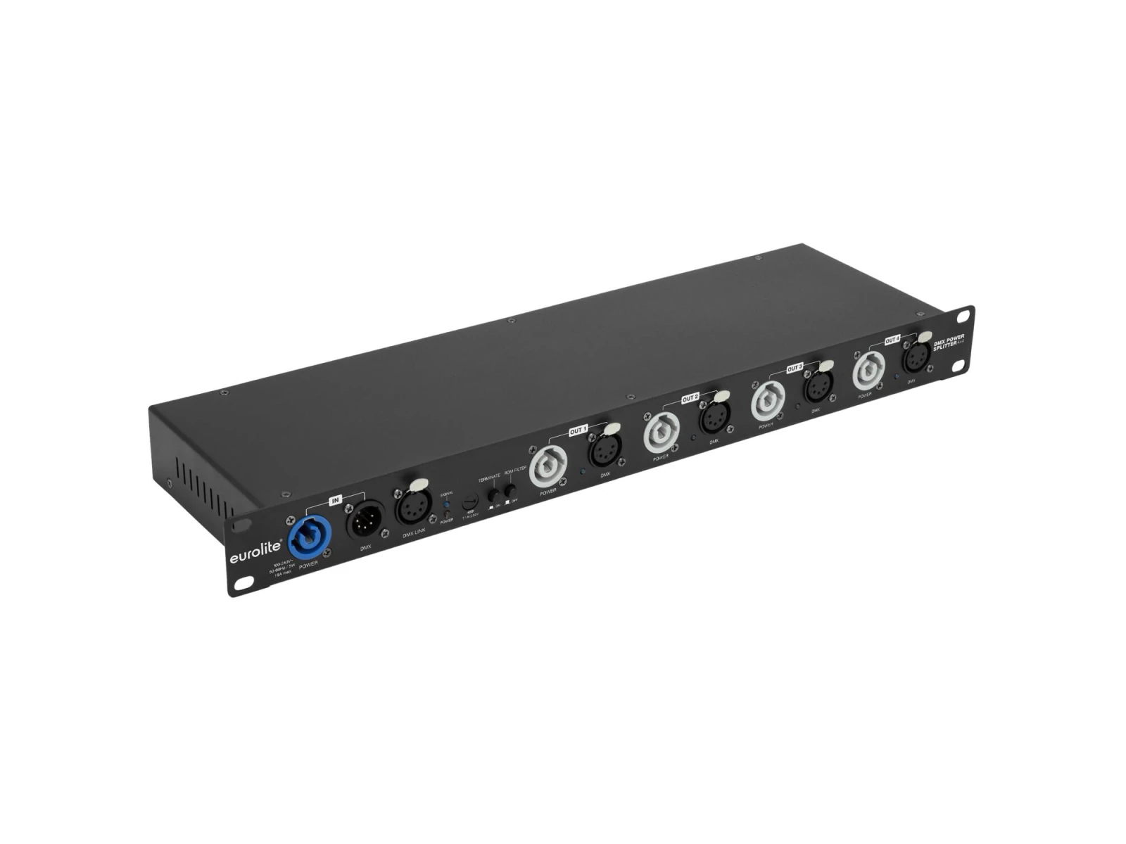 1 in/4 out power and DMX splitter with RDM support for rack mounting