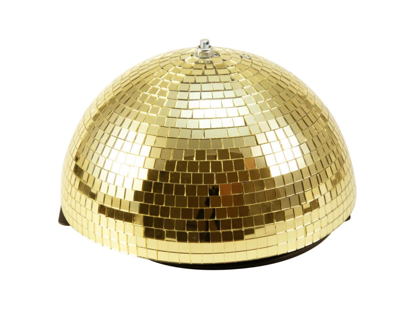 The classic light effect of the 70s and 80sNo party without a disco ball! Its simple design and affordable price make the disco ball a popular decoration classic used to create fascinating plays of light on the dance floor. For locations with limited space, this half mirror ball is a good alternative to the classic disco ball which is even easier to handle and fasten.This model in professional quality has a diameter of 20 cm, is covered with countless small mirrors and is delivered with power cord and safety plug. The integrated motor rotates the ball evenly and slowly at 2.5 rotations per minute and is particularly economical with a consumption of only 3.5 watts. This makes the ball ideal for decorations in clubs, bars, dance schools, shop windows and party rooms of any kind!