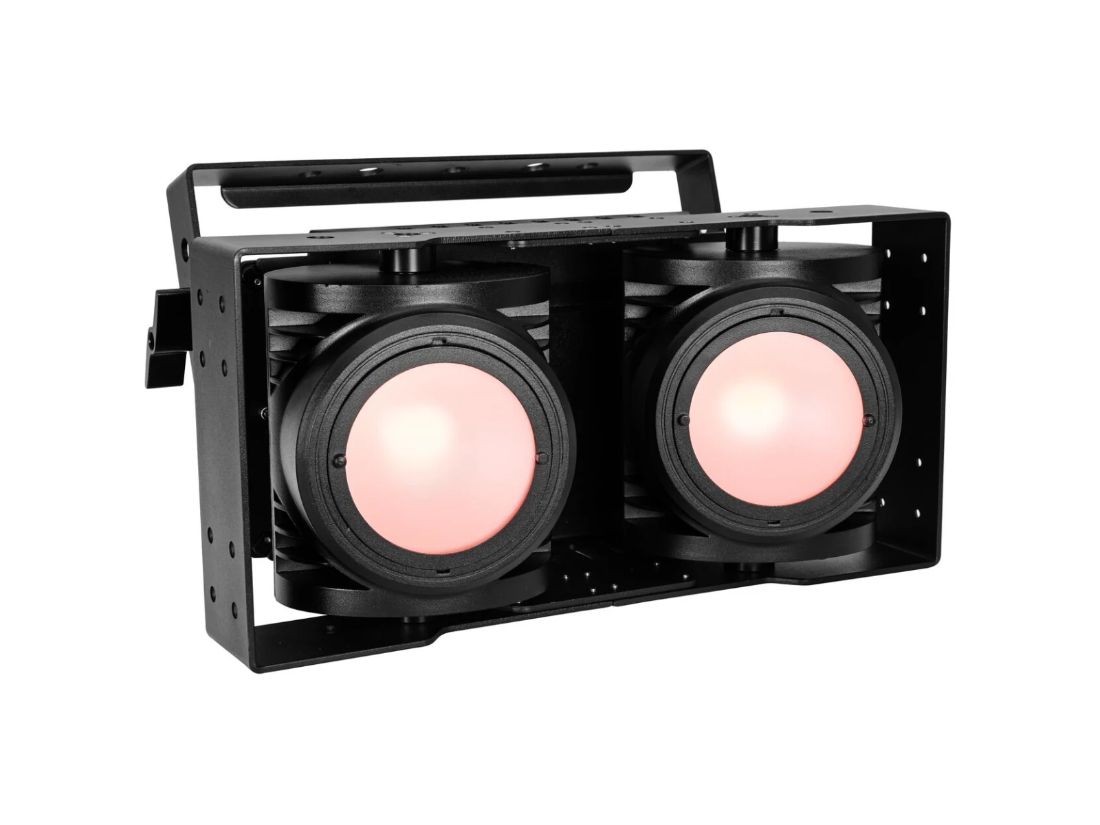 Weather-proof audience blinder with 2x 100 W COB LED in RGB+warm white