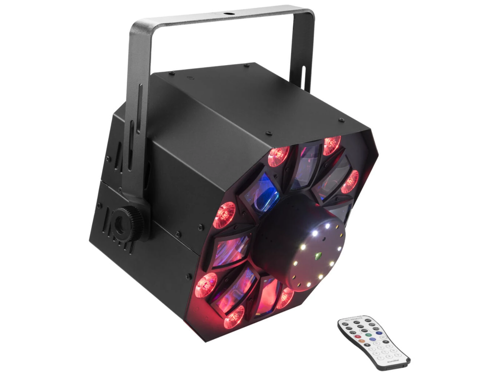 - Control via stand-alone; DMX; IR remote control; sound to light via microphone; QuickDMX via USB (optional); W-DMX by wireless solution via USB (optional); CRMX by LumenRadio via USB (optional)