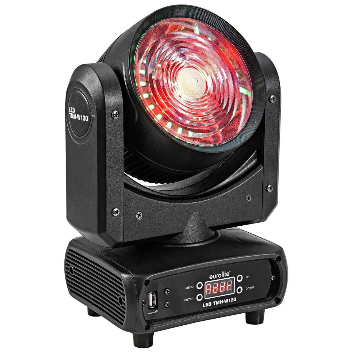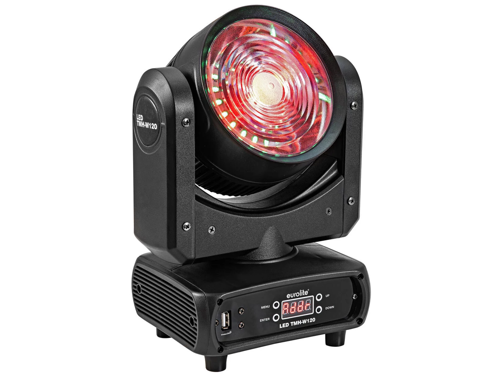 Compact LED moving head wash with 120 W RGB/WW LED and backlighting via RGB hypno LEDs