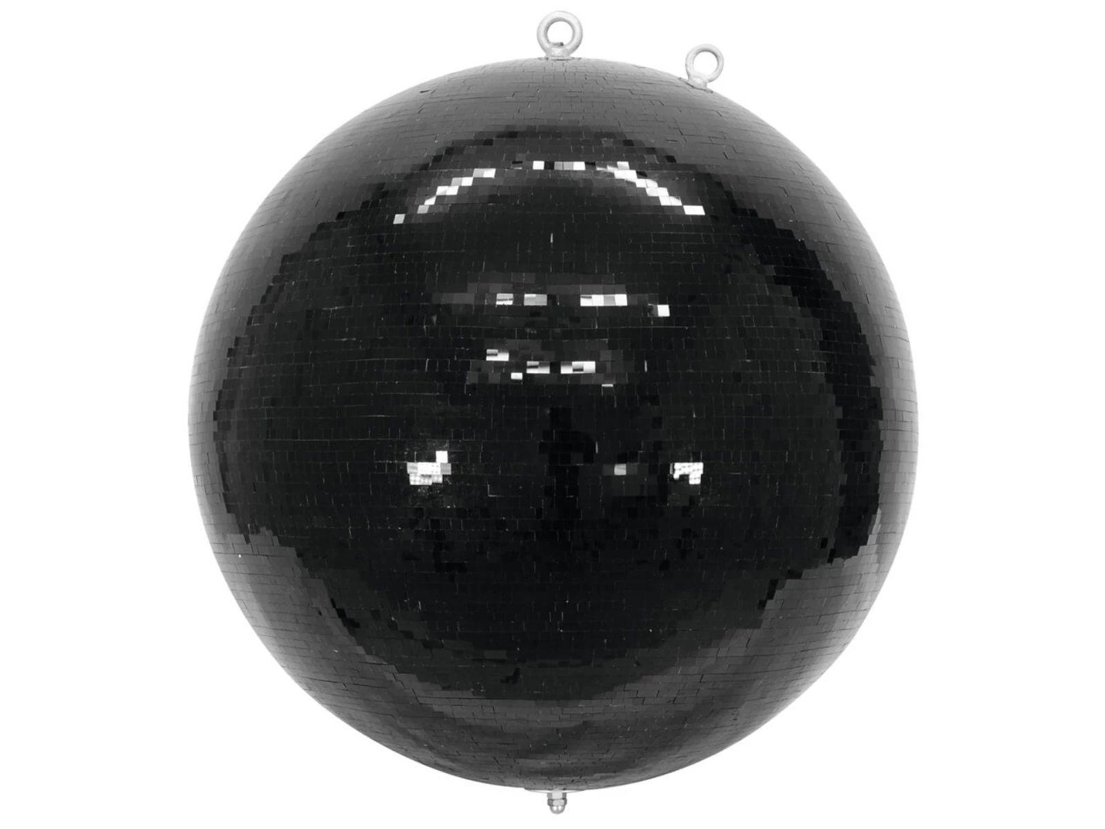 This mega mirror ball in professional quality by Eurolite has a staggering diameter of 1 meter! A mirror ball of this size is a true eye catcher in large clubs and at large events.The robust plastic core is covered with countless small blackm mirror facets and features a continuous shaft guaranteeing a high tensile strength. The mirror ball also includes two eyelets allowing for attaching both the fastening chain and the required fall protection.Suitable motors, the required mounting material and a transport case are available as accessories.