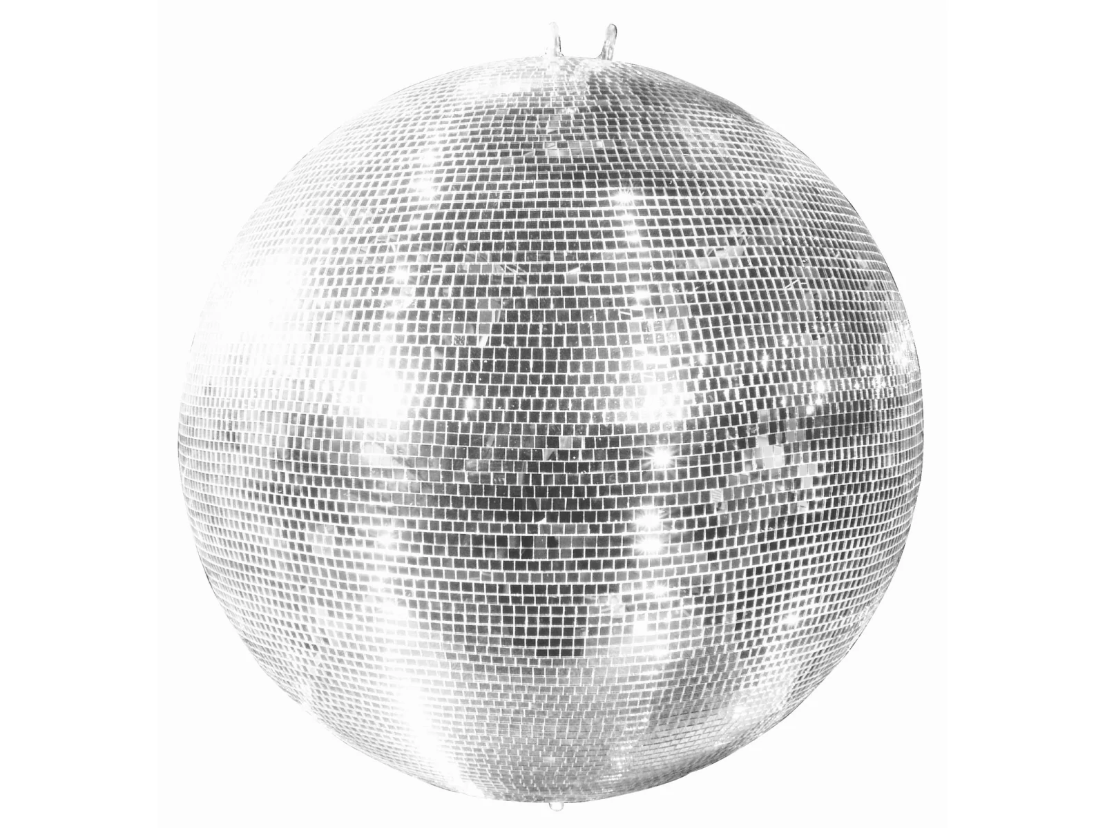 This mega mirror ball in professional quality by Eurolite has a staggering diameter of 1.50 meters! A mirror ball of this size is a true eye catcher in large clubs and at large events.The robust plastic core is covered with countless small mirror facets and features a continuous shaft guaranteeing a high tensile strength. The mirror ball also includes two eyelets allowing for attaching both the fastening chain and the required fall protection.Suitable motors and the required mounting material are available as accessories.
