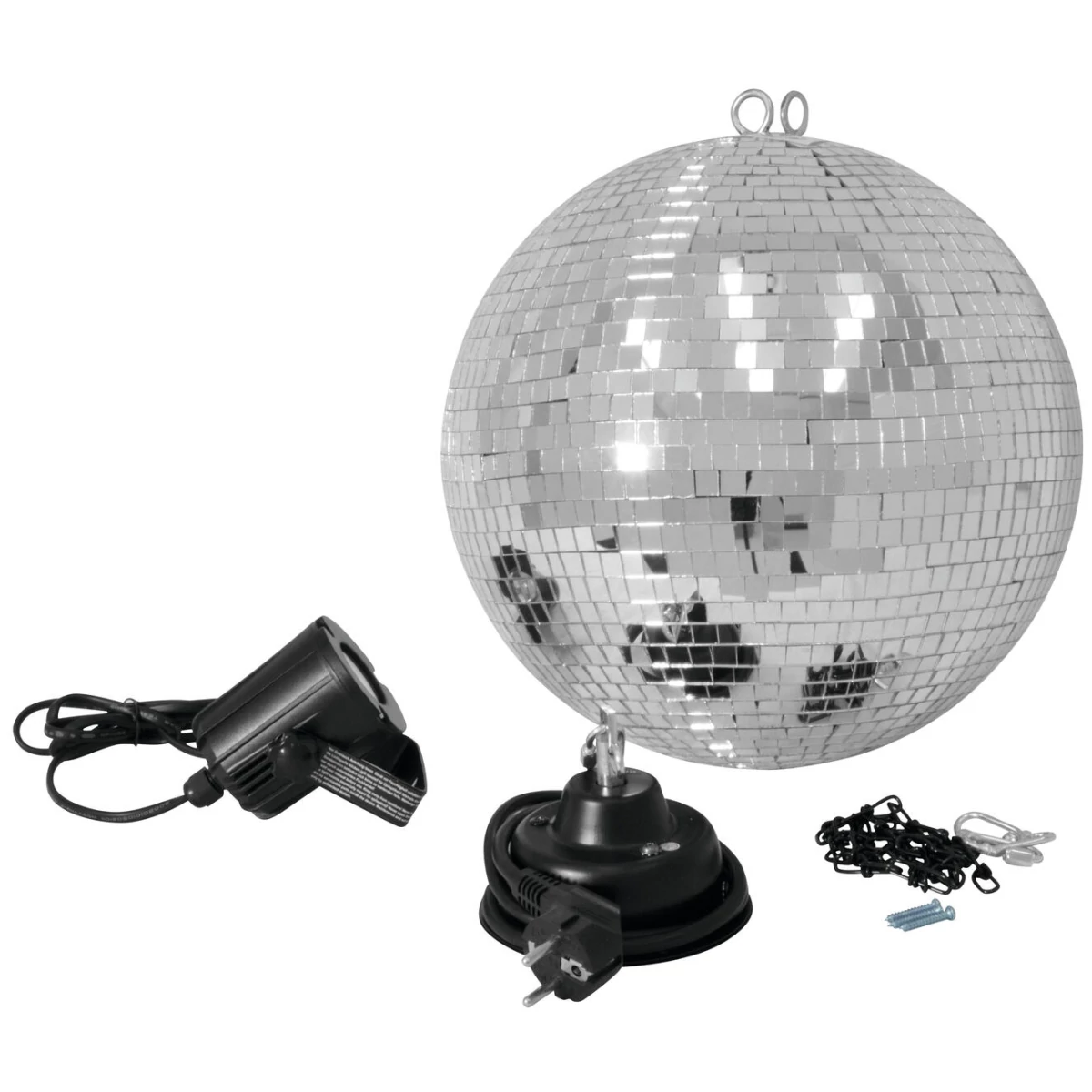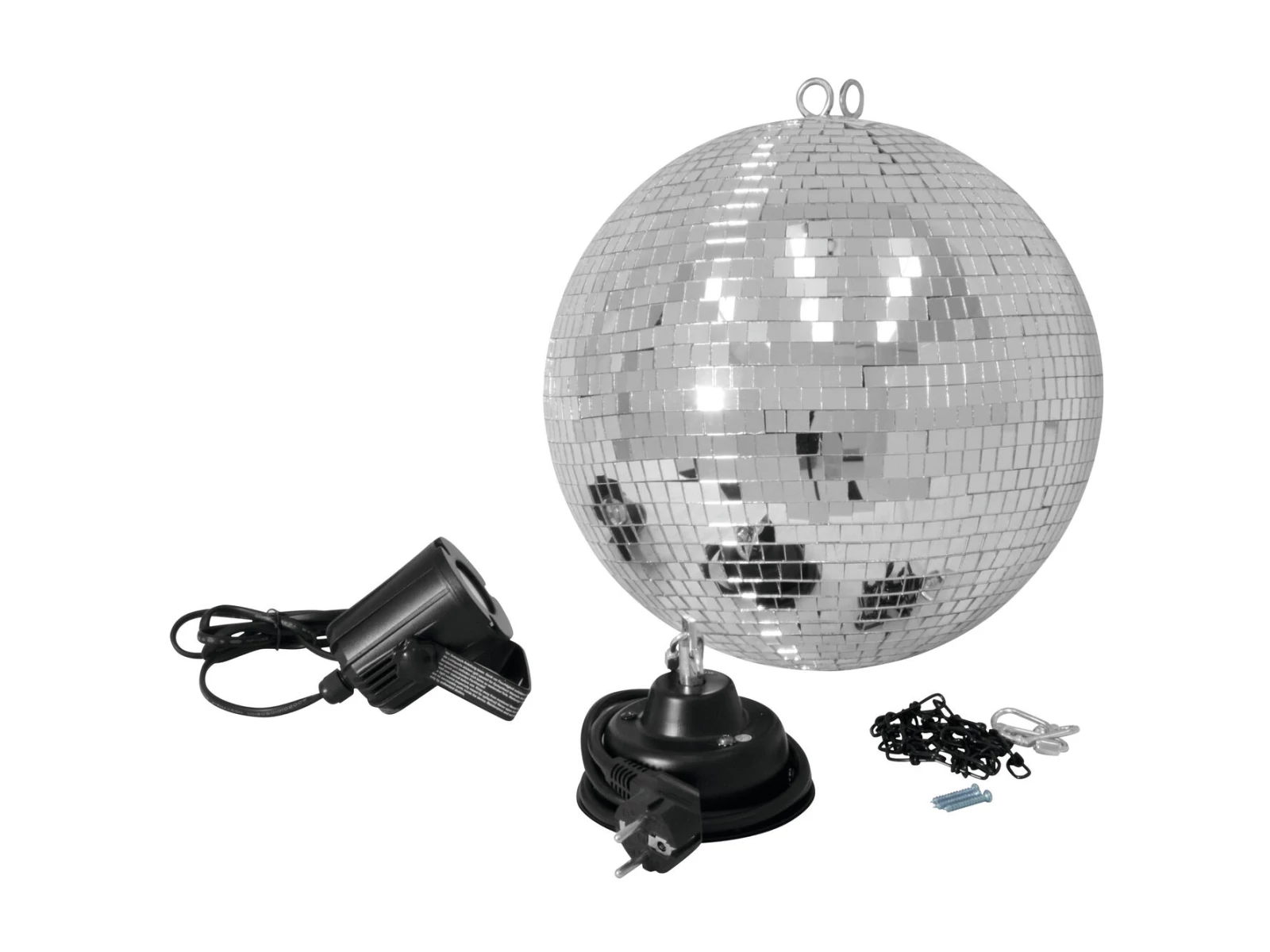 Set with motor, mirror ball, chain, and white pinspot
