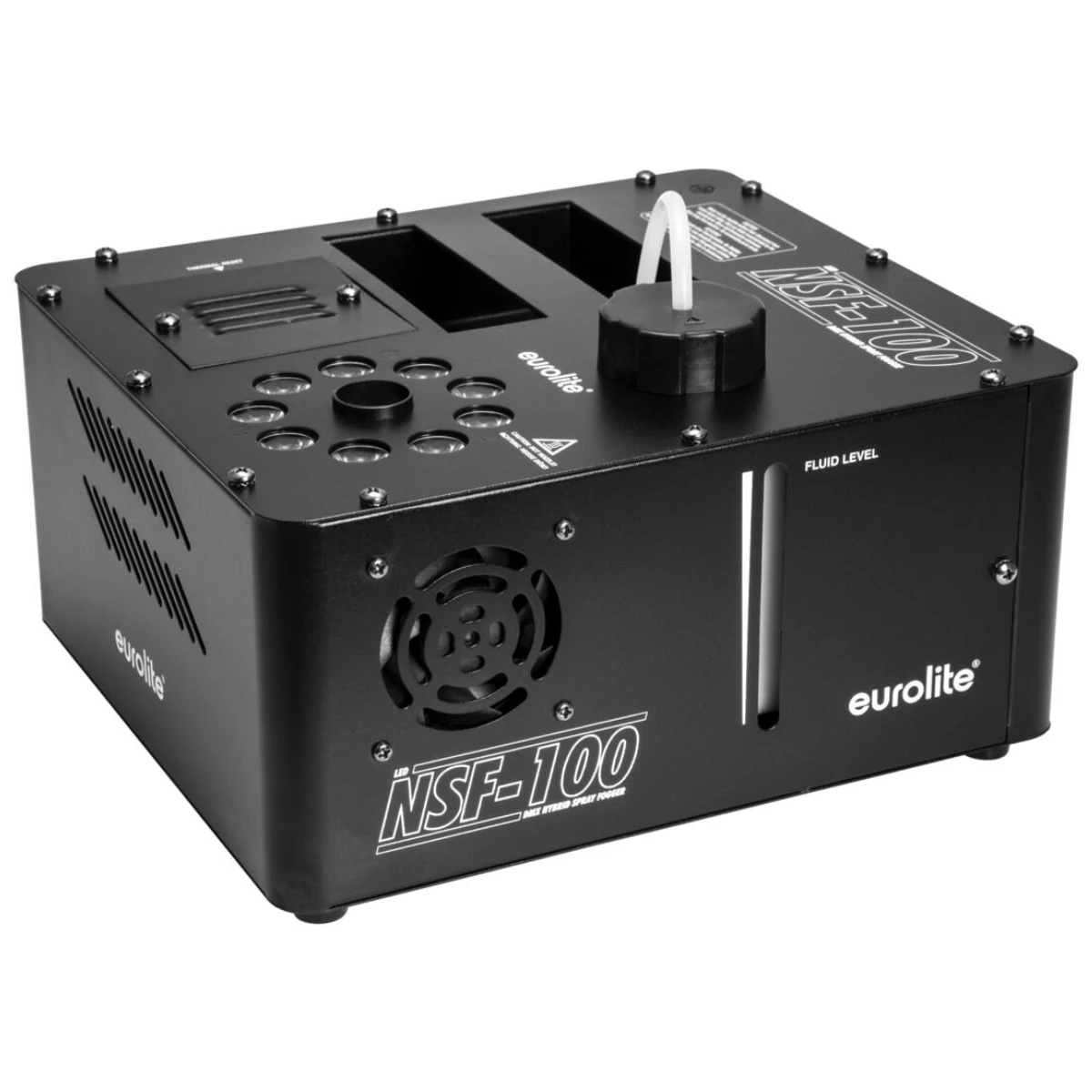 DMX fog machine with 850 W, LED illumination, vertical fog output