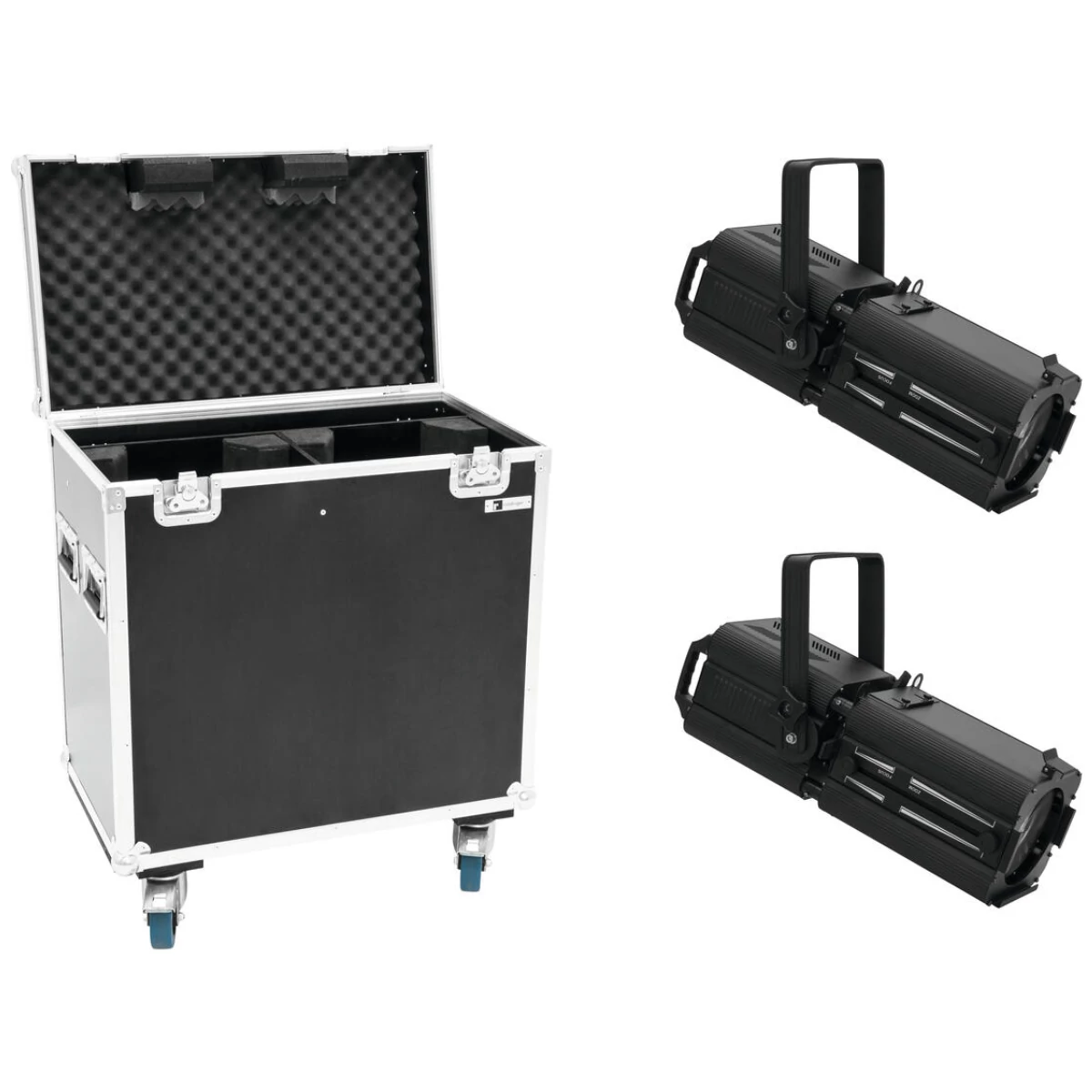 2x PRO profile spotlight with 100 W 4in1 LED including PRO flightcase