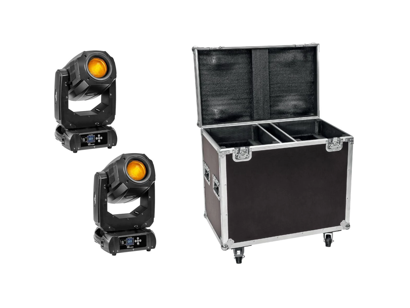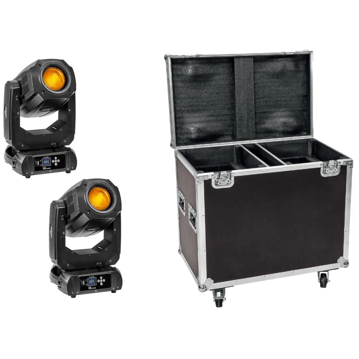 2x LED moving head spot including PRO flightcase