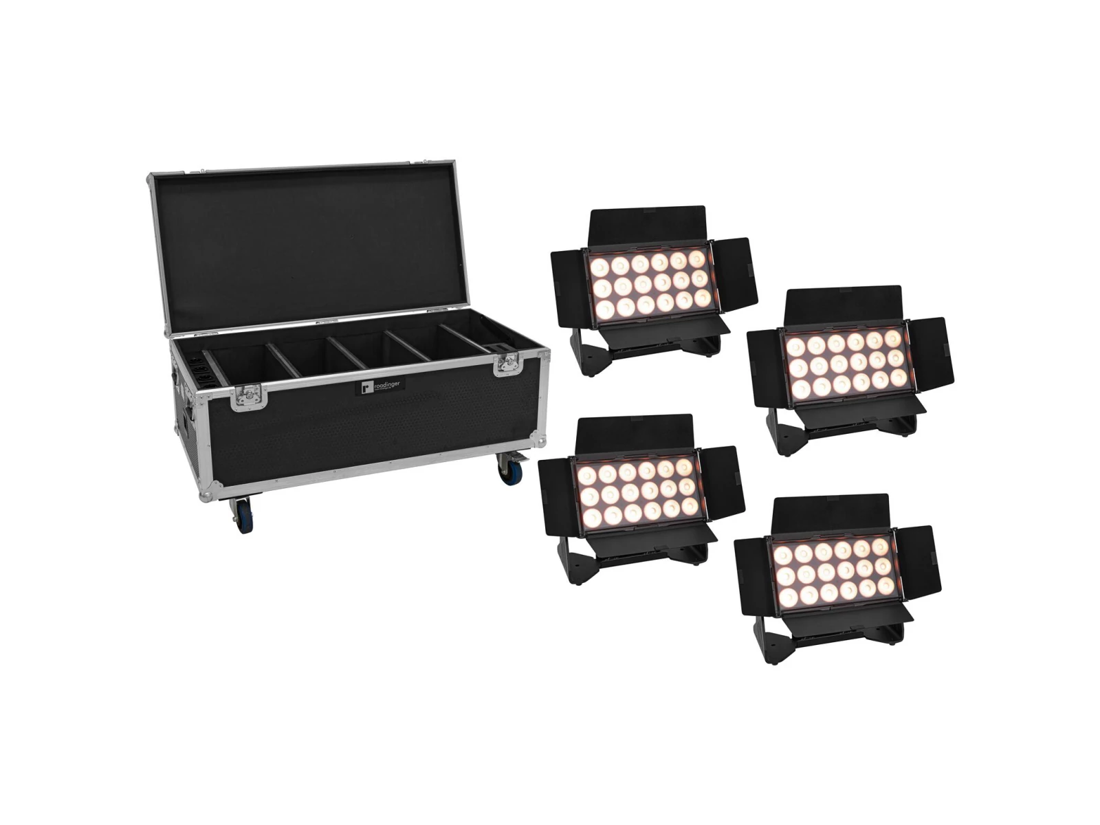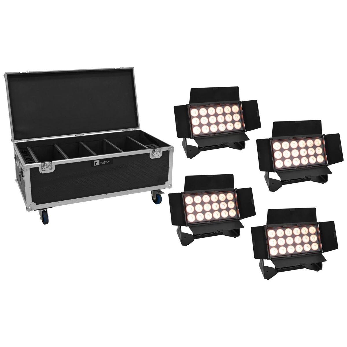 1 x ROADINGER Flightcase 4x AKKU Multiflood IP 18x10W RGBW Wash CRMX with charging function