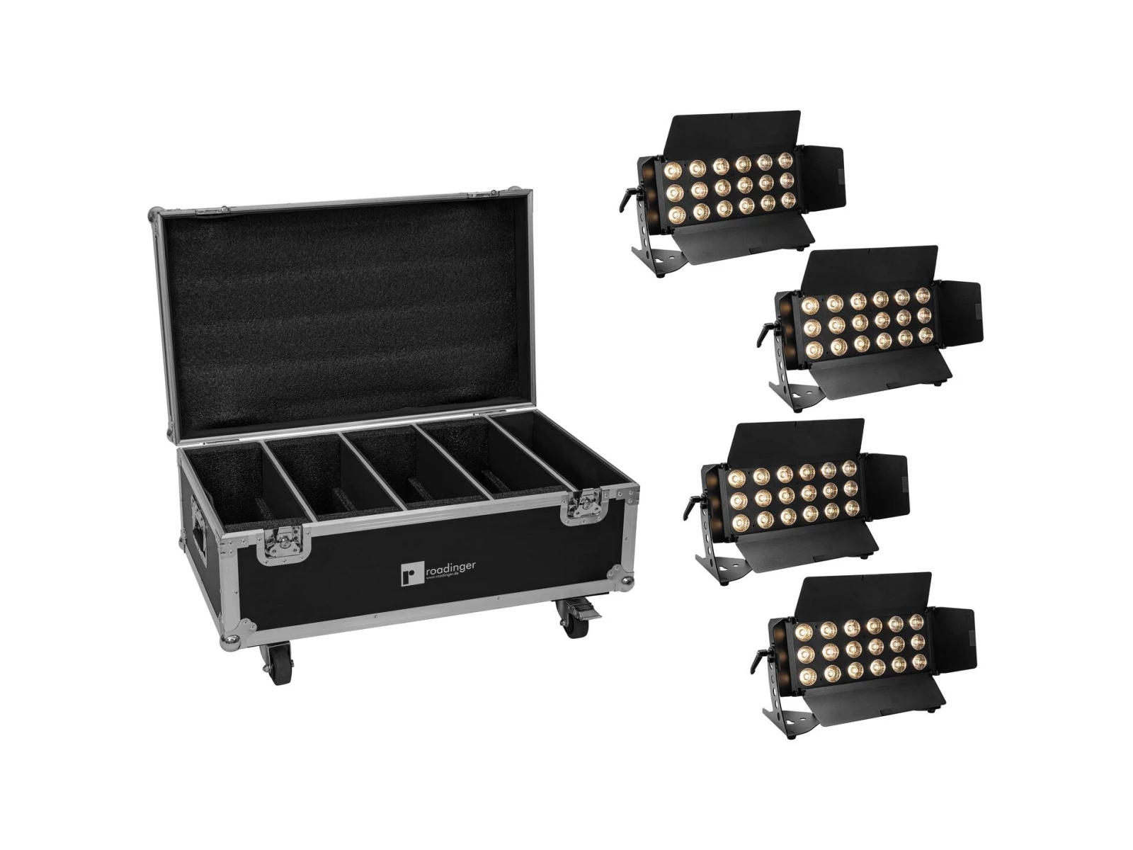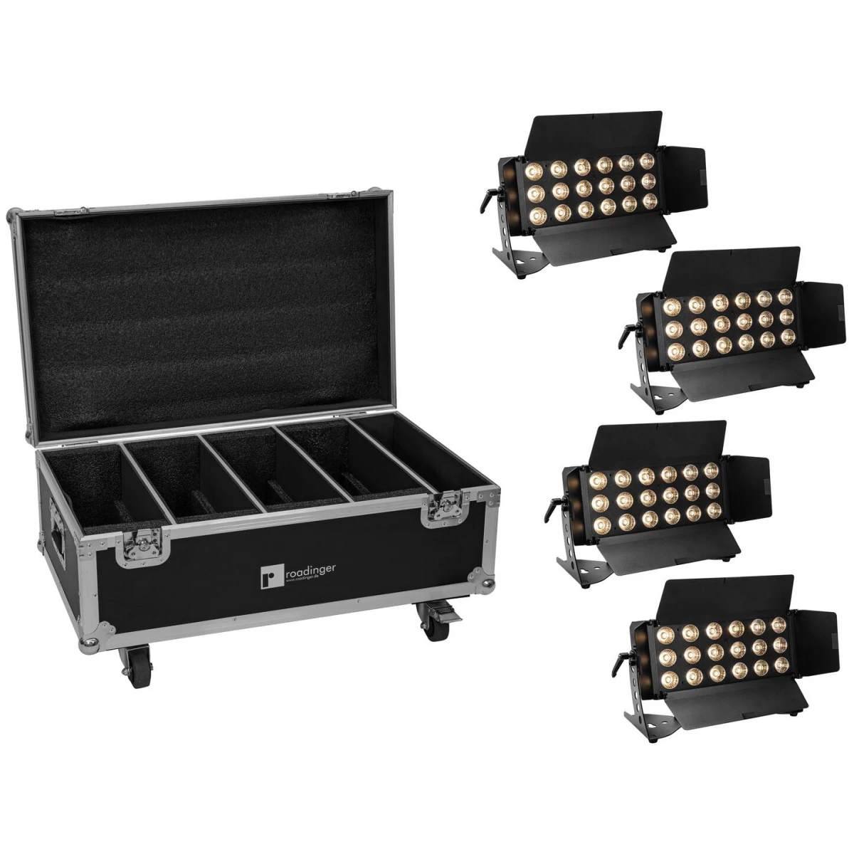 ROADINGER Flightcase 4x LED CLS-18 QCL RGB/WW with wheels