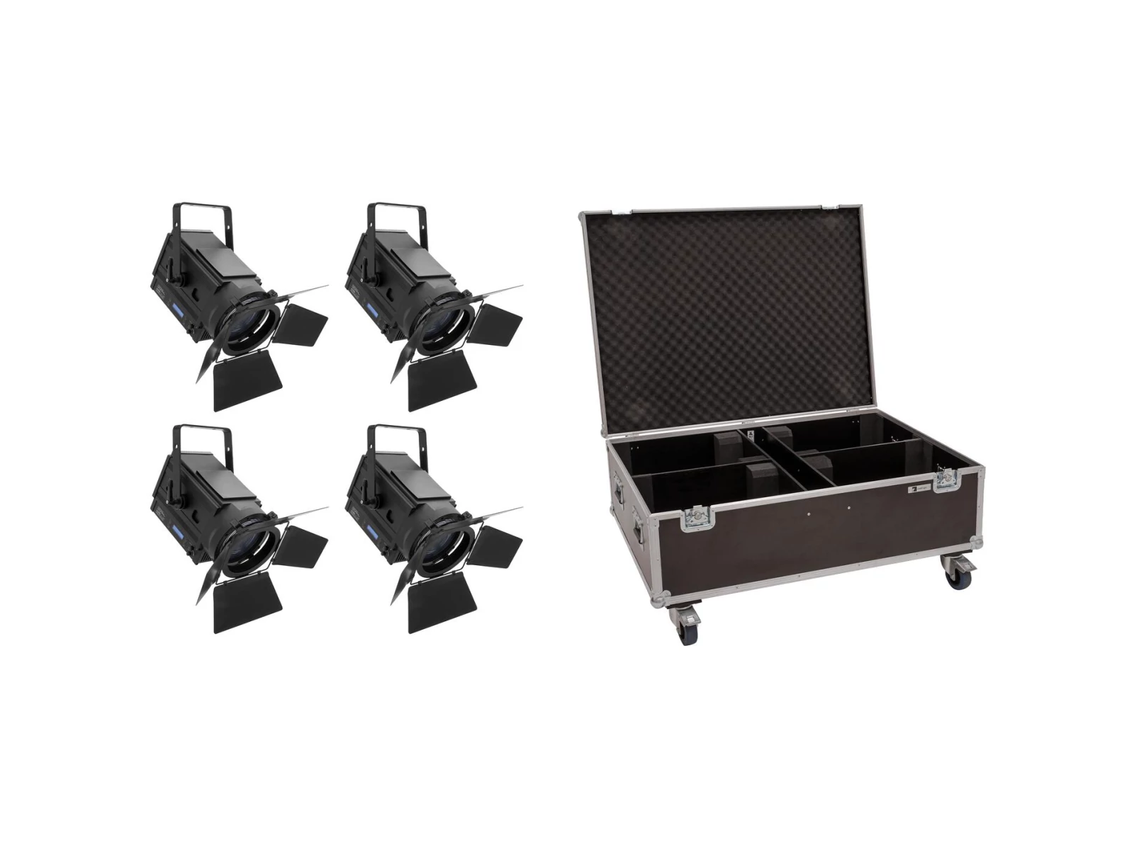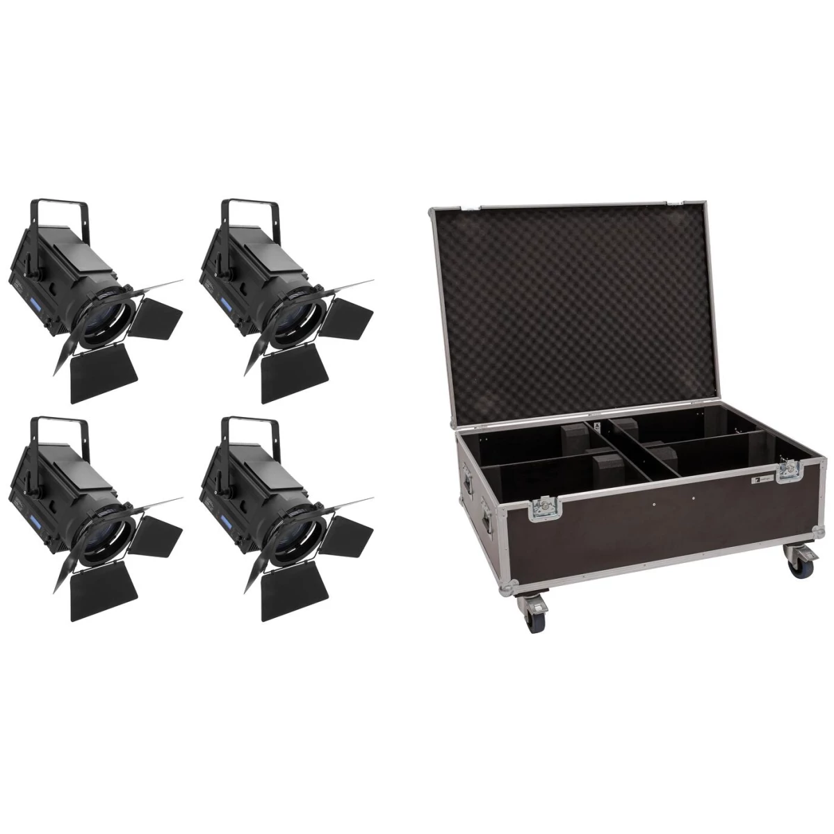4x fresnel spot with 170 W warm white/amber LED including PRO flightcase