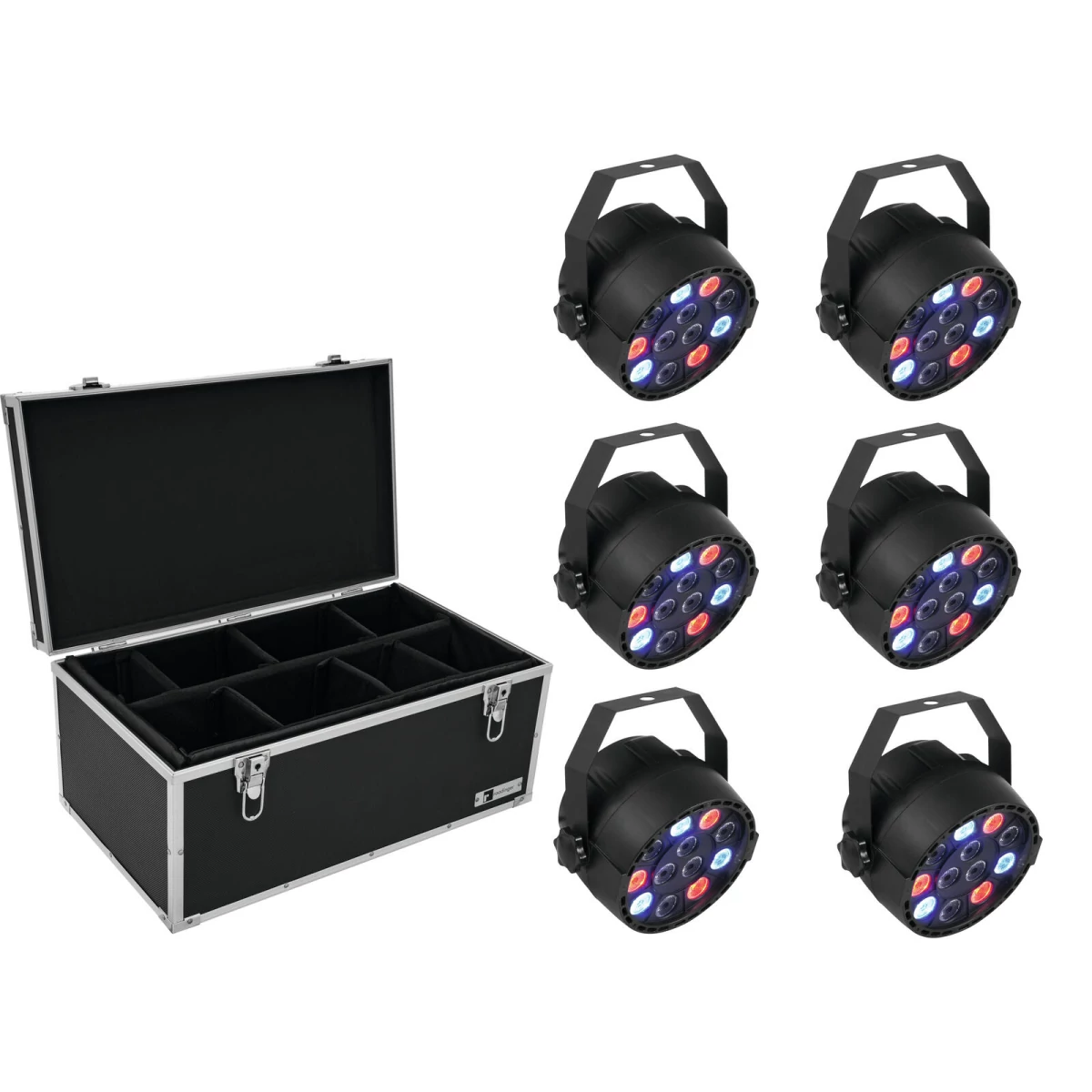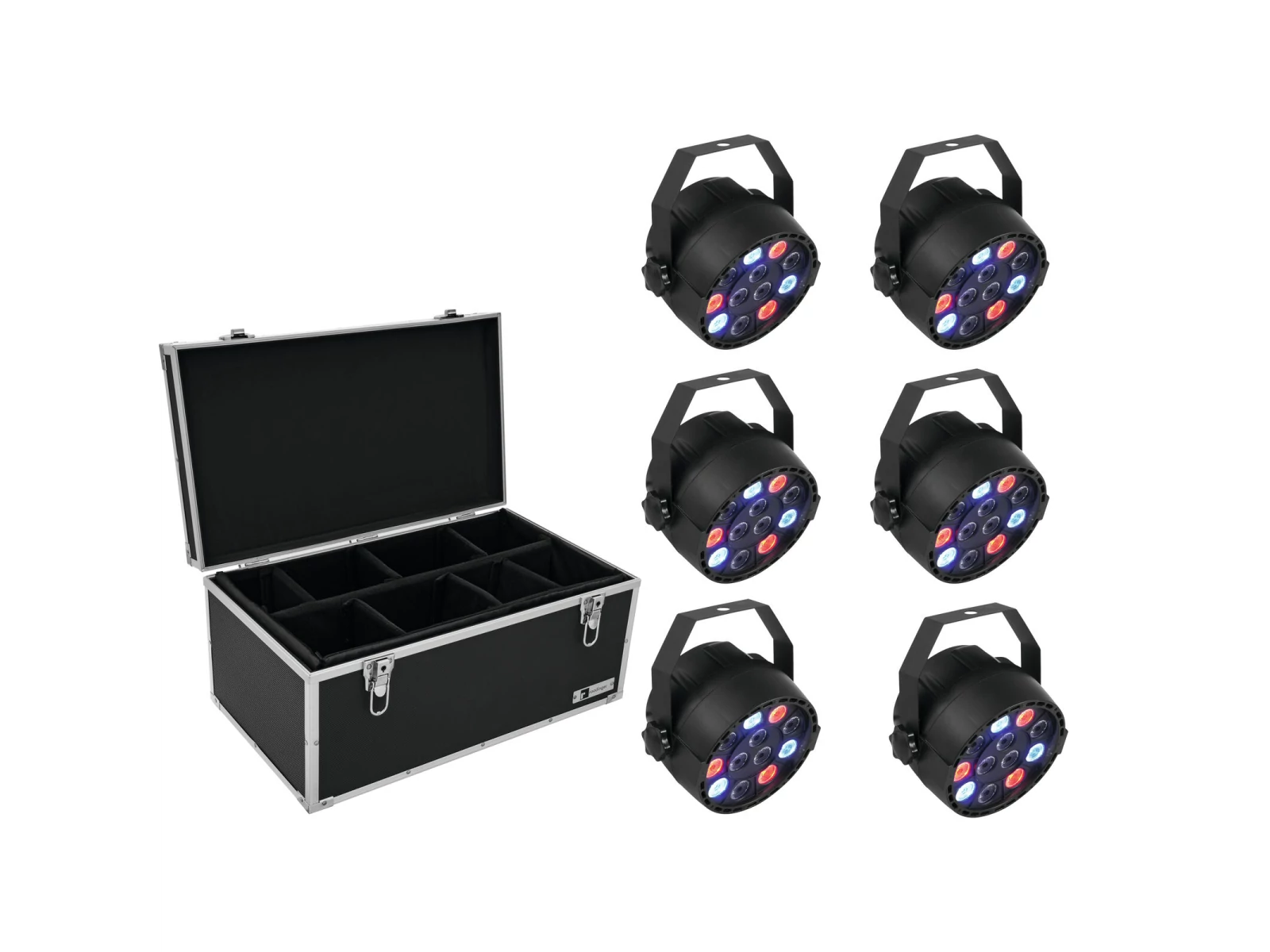 6x compact spotlight with 12 x 1 W LED in RGBW including universal case