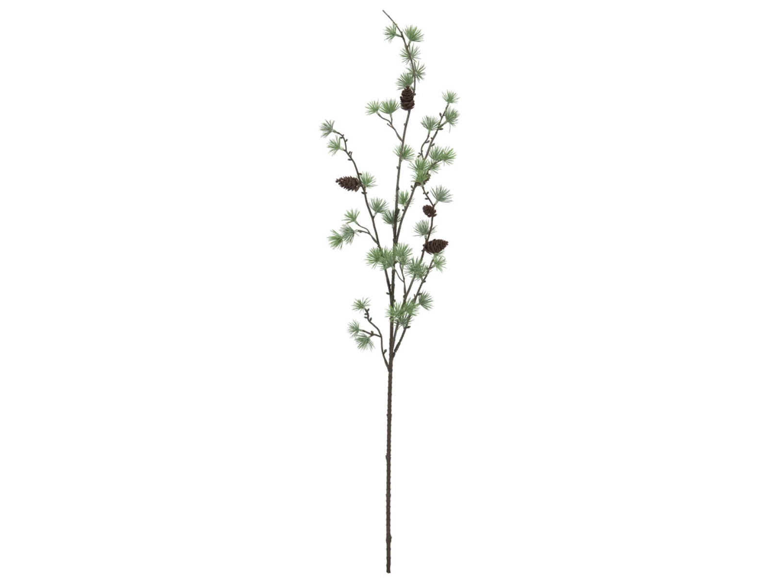 Whether arranged in a large vase, integrated in appealing themed decorations or used as table and counter decoration - the artificial larch branch of Europalms is versatile.The decoration branch is completely made of plastic and already equipped with larch cones in different sizes. Due to a special injection molding process, its fine green needles appear particularly lifelike.It has a total length of approx. 100 cm.