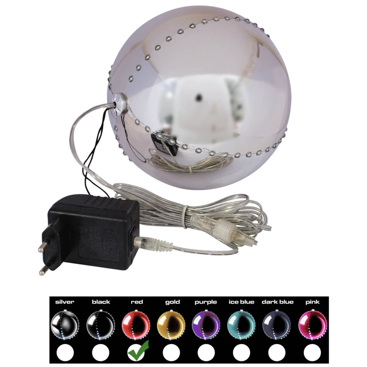 High-quality plastic sphere with four vertical circumferential LED rows