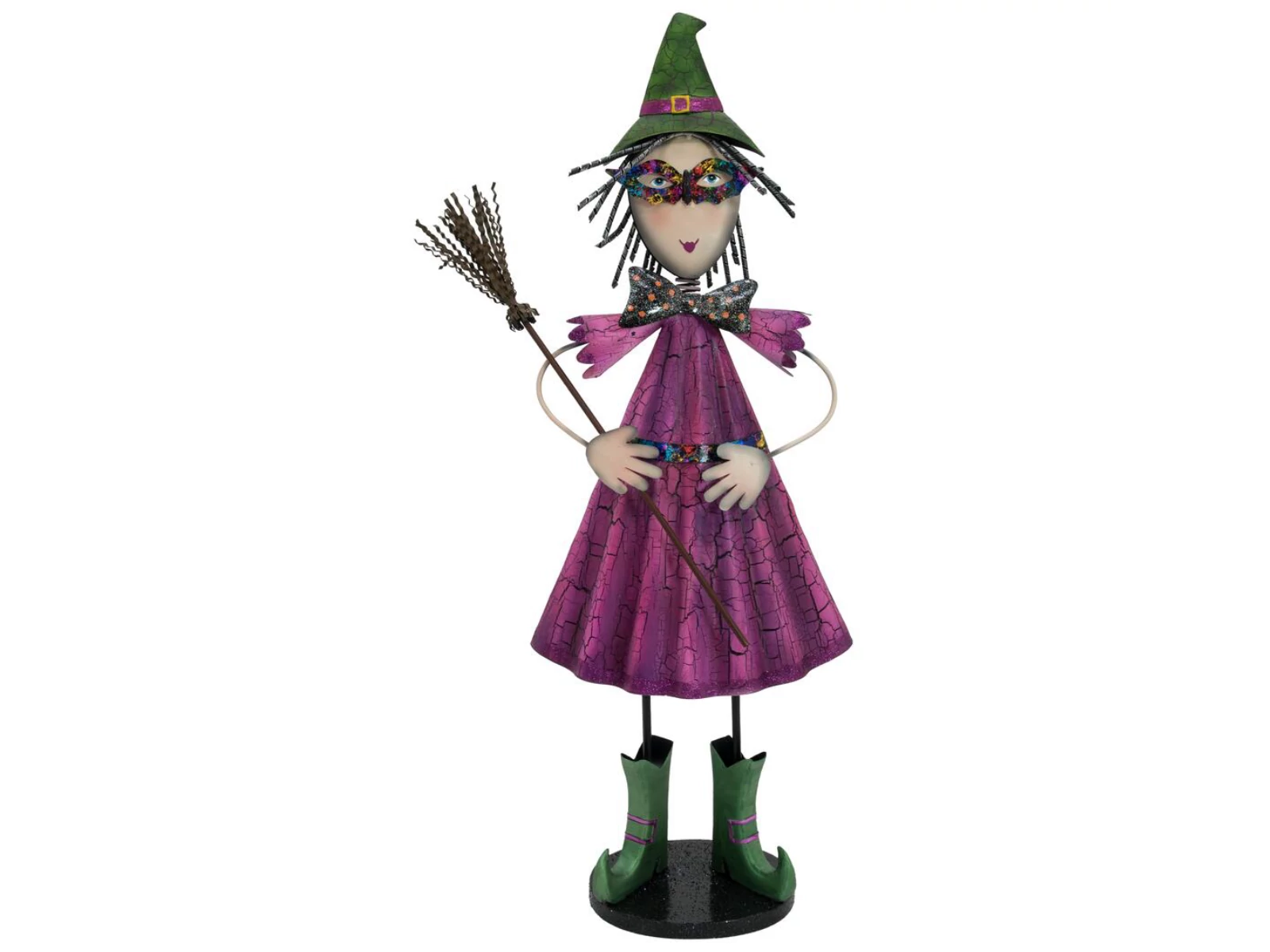 Handmade witch made of metal, with broom and color finish