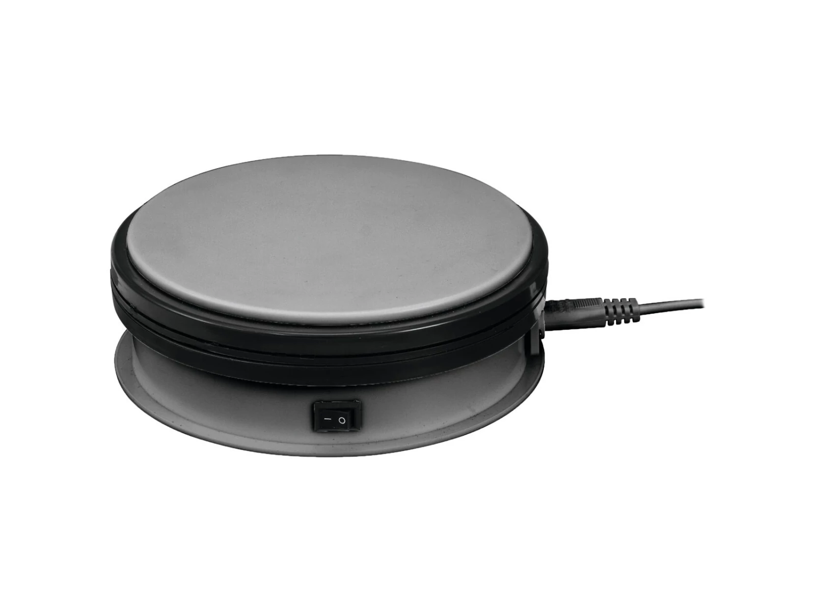 Perfect presentation thanks to rotary plateThe electrical rotary plate by EUROPALMS is ideal to promote your products with style. No matter if it is at a trade fair or in a window display, this rotary plate makes any product a real eye-catcher.Small power packageThe high-performance motor has been developed for permanent use and can move products with a weight between 5 and 40 kg, depending on the model. The rotary plate is delivered ready to use. It is equipped with a Euro power cord and is available in 3 different sizes:- 15 cm diameter - 5 kg maximum load with 2.4 rpm- 25 cm diameter - 25 kg maximum load with 1 rpm- 45 cm diameter - 40 kg maximum load with 0.5 rpmAvailable in different colorsThe housing impresses with its elegant design and is available in the colors silver, black and white. The choice is up to you!