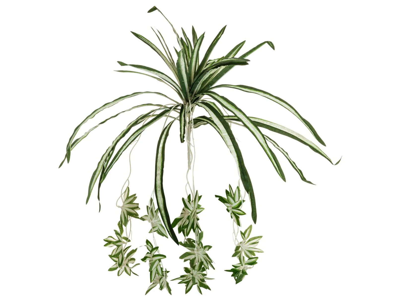 Whether on a windowsill, on a shelf, in a hanging basket or on a pedestal: Green lilies are true all-rounders. As an evergreen "roommate", the houseplant fits stylishly into any living or business space.As with its natural model, long, narrow, lanceolate textile leaves form a dense cluster of leaves with overhanging growth in this artificial version. Several long-hanging flower shoots have already formed offshoots (filaments) on this counterpart of a real green lily, giving the artificial plant a particularly lifelike appearance. The plant falls into shape on its own and a practical insertion rod made of PE allows for quick and uncomplicated decorating.