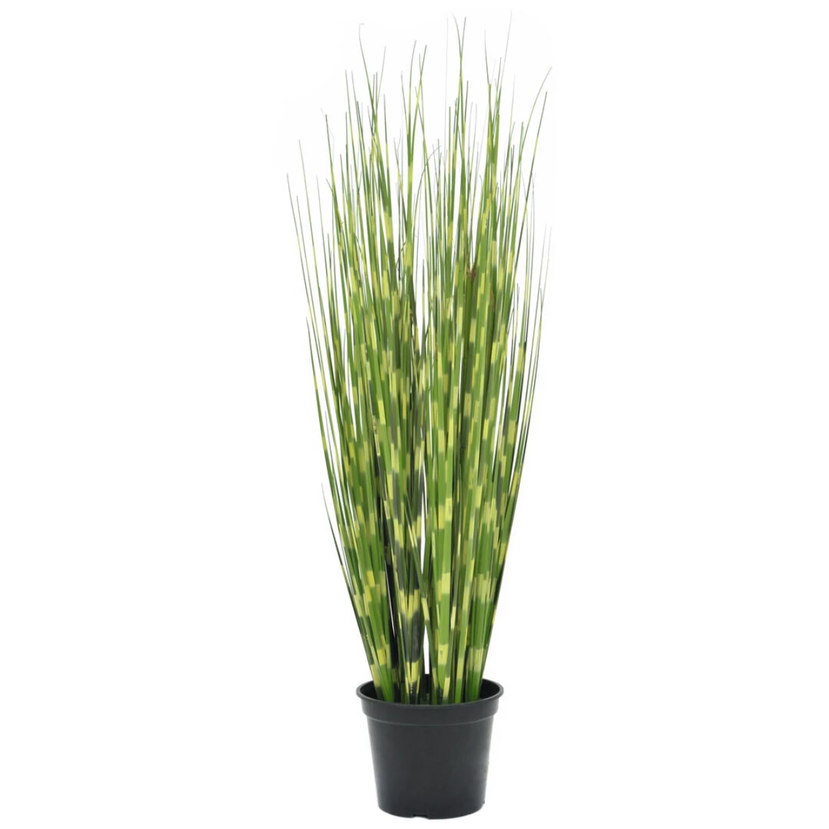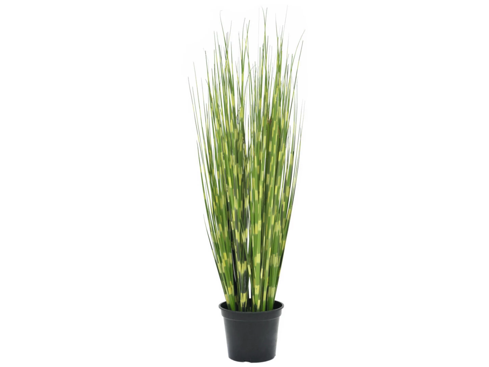 Not only for balcony and terrace, but also for decoration in your living and business premises this popular ornamental grass is perfect.The approx. 90 cm high artificial grass shrub already falls into shape by itself when placed. There are evenly spaced yellow-green stripes on its filigree stems. This cross-striped "zebra look" gave this striking version of Chinese reed its name.The artificial zebra grass is delivered in a plain gardener's pot, which makes it easier for you to pot it into a suitable planter and serves to better hold the plant.