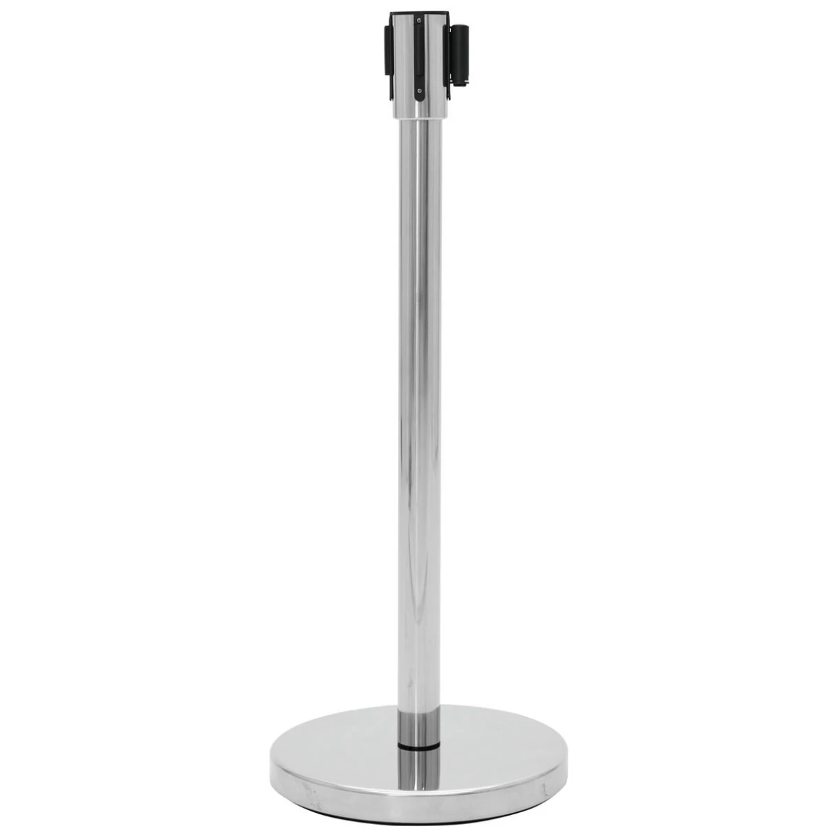 Barricade and direct: Time-saving and elegantThis barrier system enables you to create queues, manage people or close off an area. Whether discotheque, cinema or waiting room: thanks to its quick assembly and disassembly, you can use the system flexibly for the most diverse occasions. High-quality designThe posts of the barrier system are made of stainless steel and are therefore also suitable for outdoor use. The material is highly polished and looks very elegant. The belt system is self-retracting. A belt can be extended up to 3 meters. The belt pulleys are interchangeable and available in red and black.You can connect the end of the belt either with a permanently installed wall bracket or another belt system.