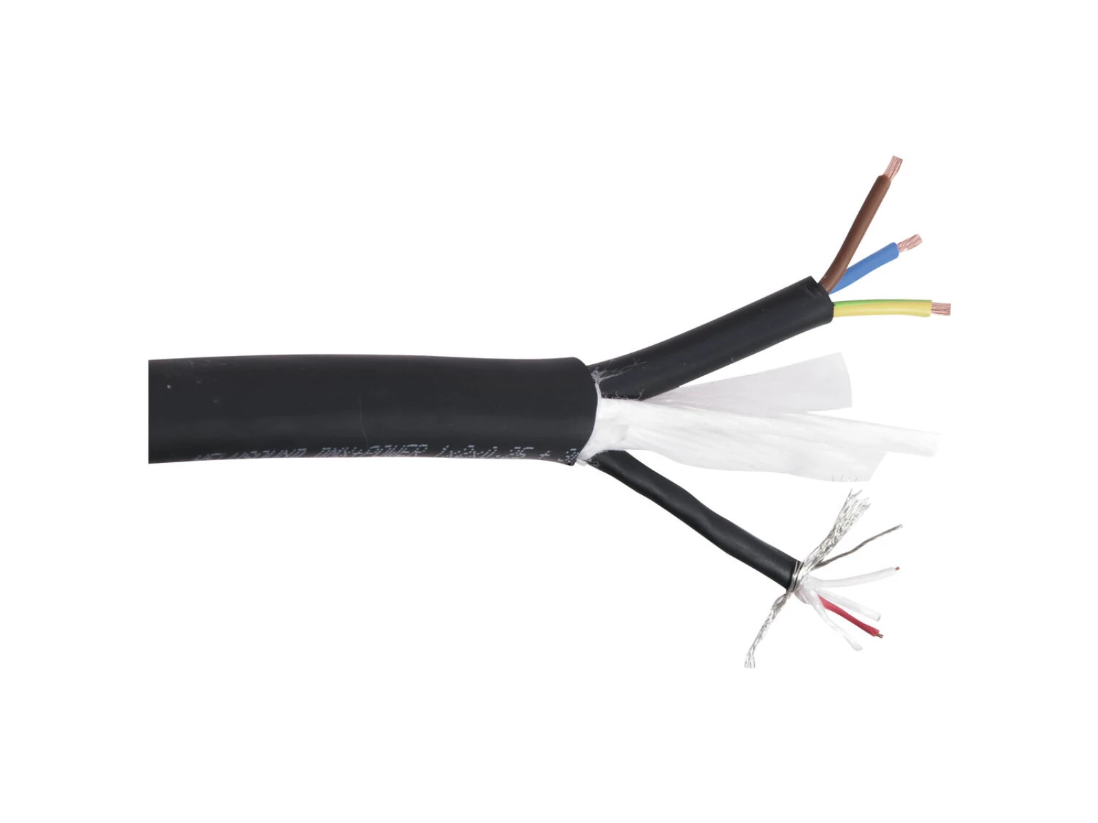The HELUSOUND® DMX+POWER hybrid cable combines a shielded light control wire and the power supply wire. The DMX-cable, which is shielded by a tin-coated copper braiding is perfectly suited for the control of light systems and mixing boards (110 Ohm characteristic intrinsic impedance). It highlights a soft PVC insulation and it is qualified for the use at indoor and outdoor installations. The DMX cable can also be used for the transmission of audio signals such as a microphone wire or as a power supply wire for active loudspeaker systems.
