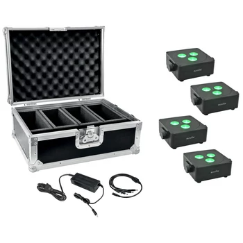 EUROLITE Set 4x AKKU IP Flat Light 3 bk + Charger + Case