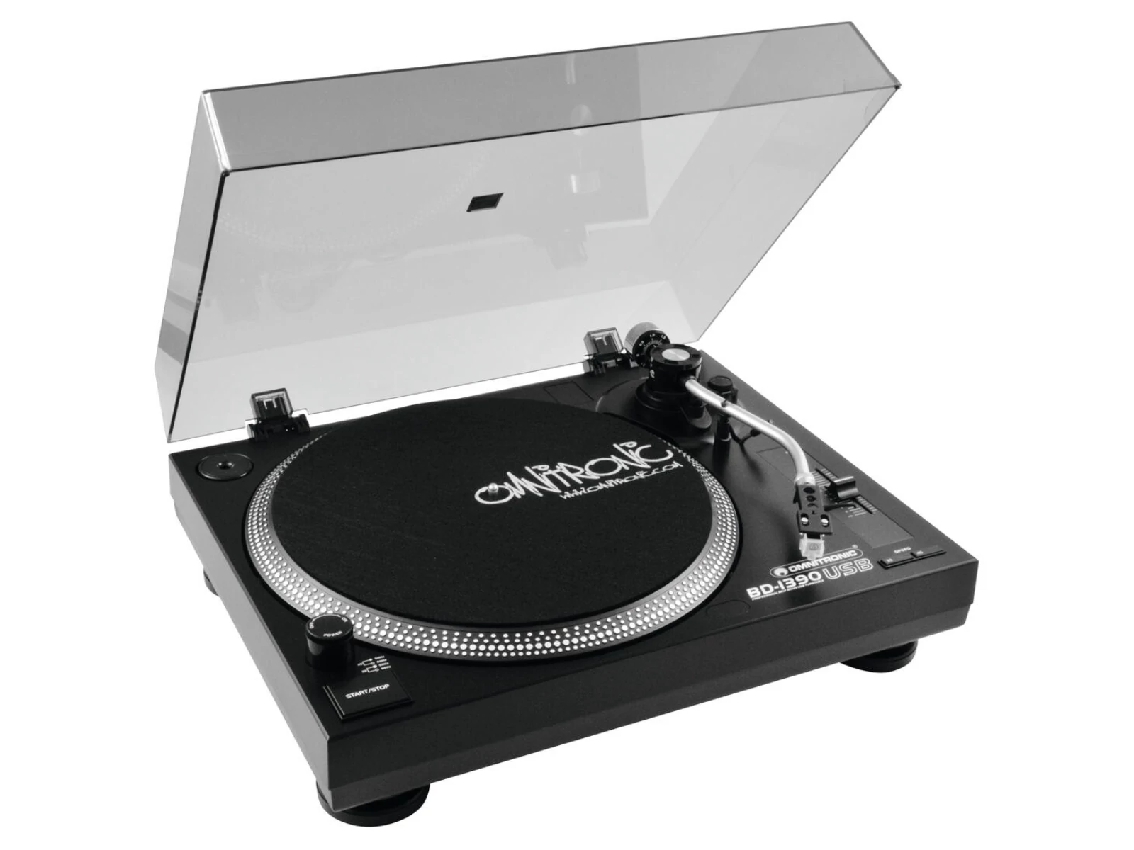 Belt drive DJ turntable with USB interface and recording software, black