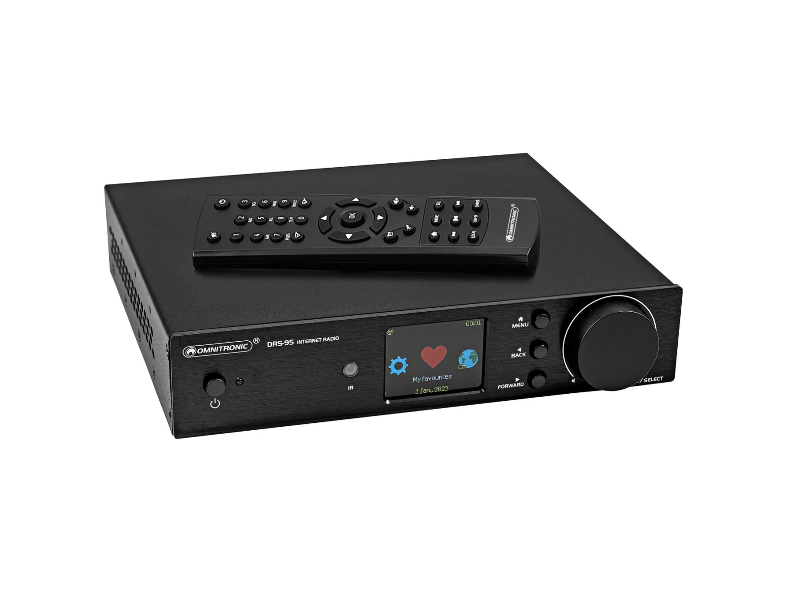 | Control elements | Power switch, encoder, navigation keys, menu, tone control; source selector, audio player |