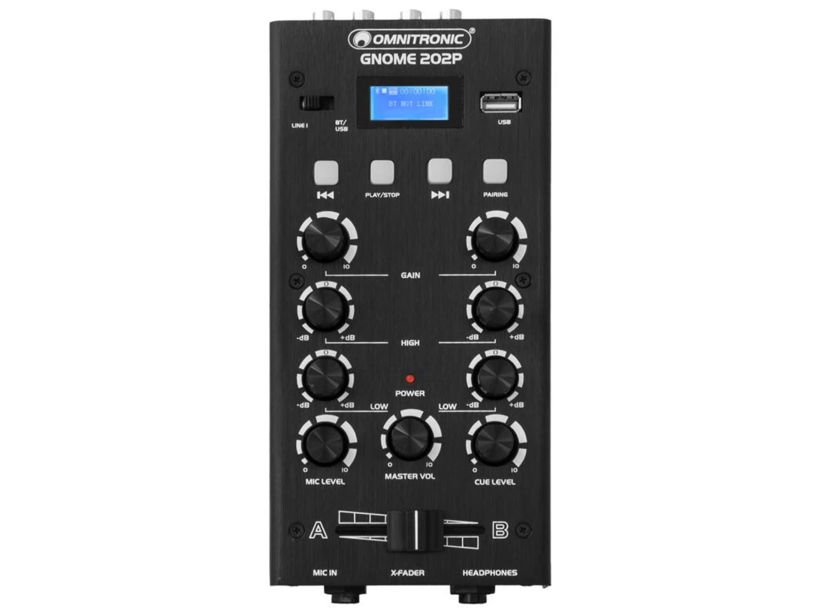 2-channel miniature DJ mixer with Bluetooth and MP3 player