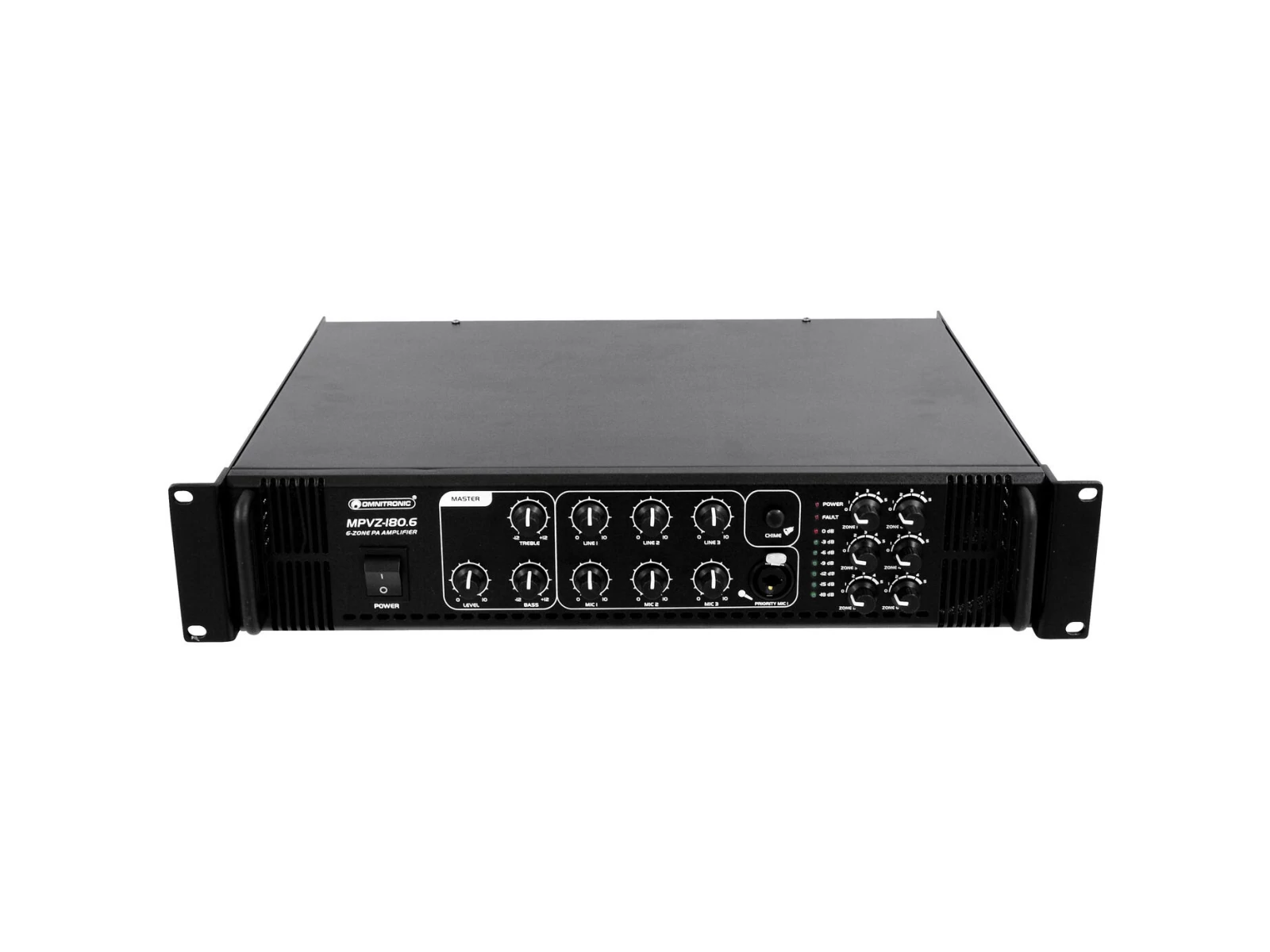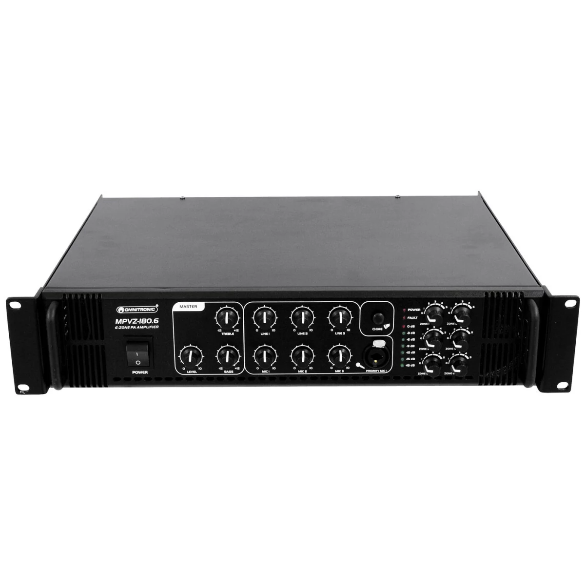 6 zone PA mixing amplifier adjustable zones, 180 W RMS