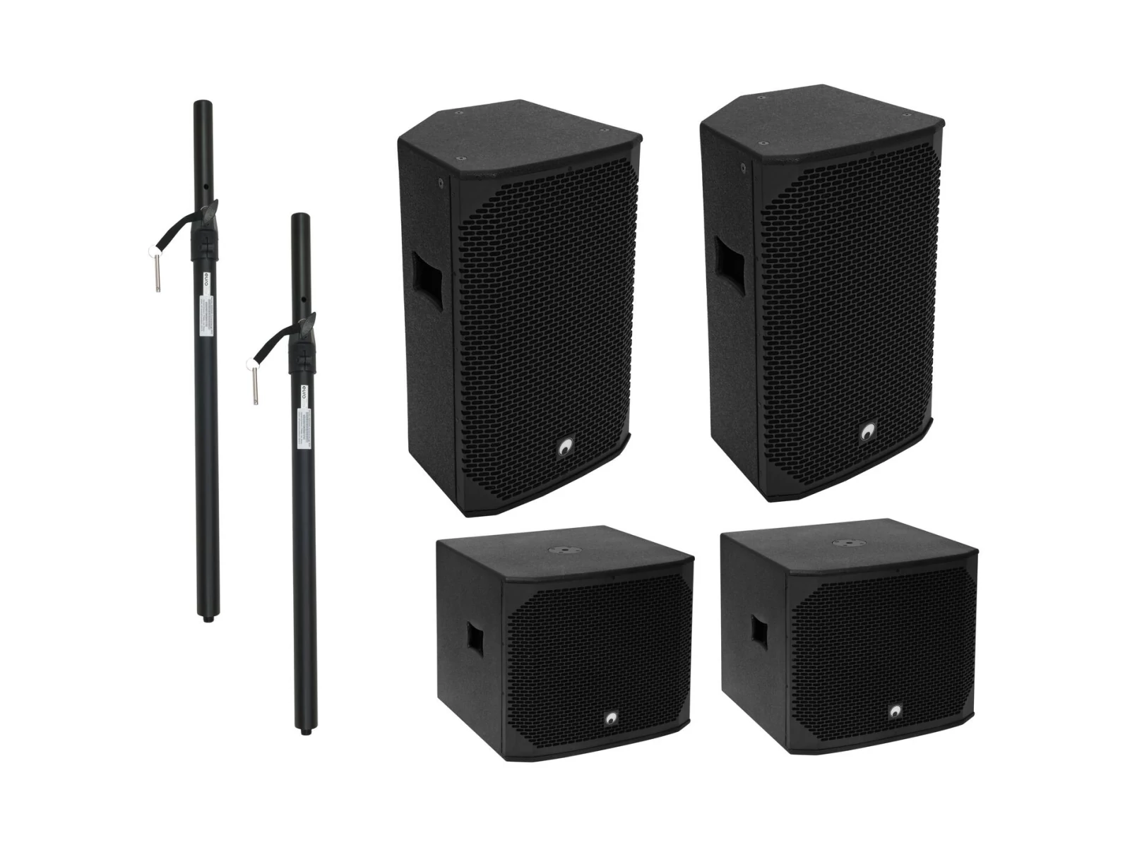 2x AZX-118A PA Subwoofer active 400W, 2x AZX-215A 2-way Top active 350 W including 2x distance tube