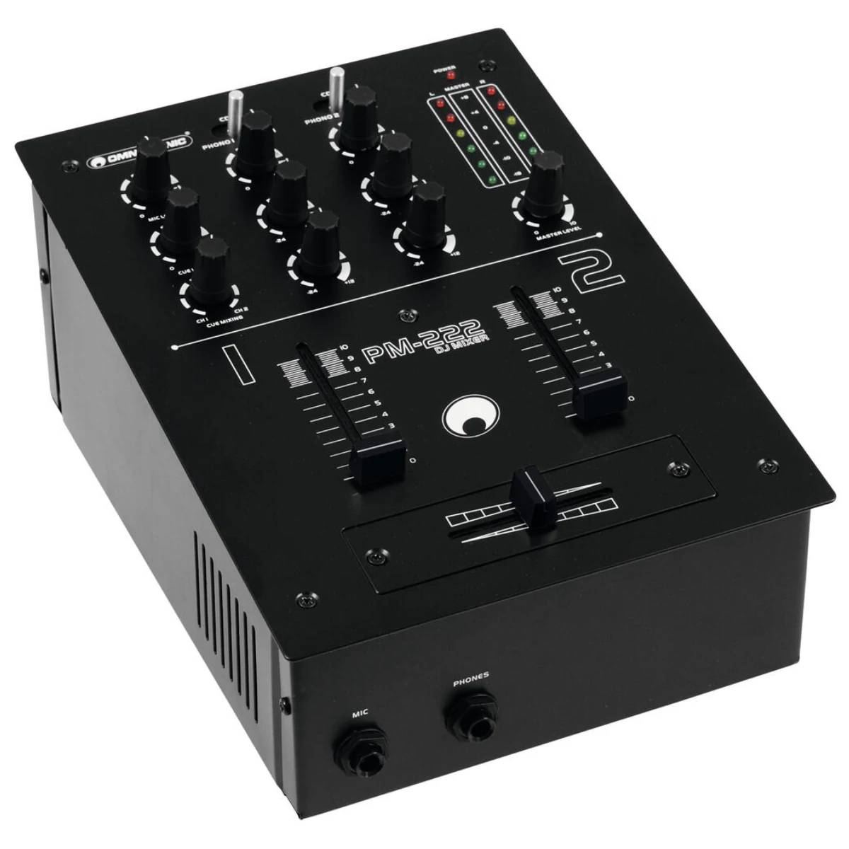 - Pre-fader listening (CUE) to the input channels via adjustable headphones output, with cue mix control