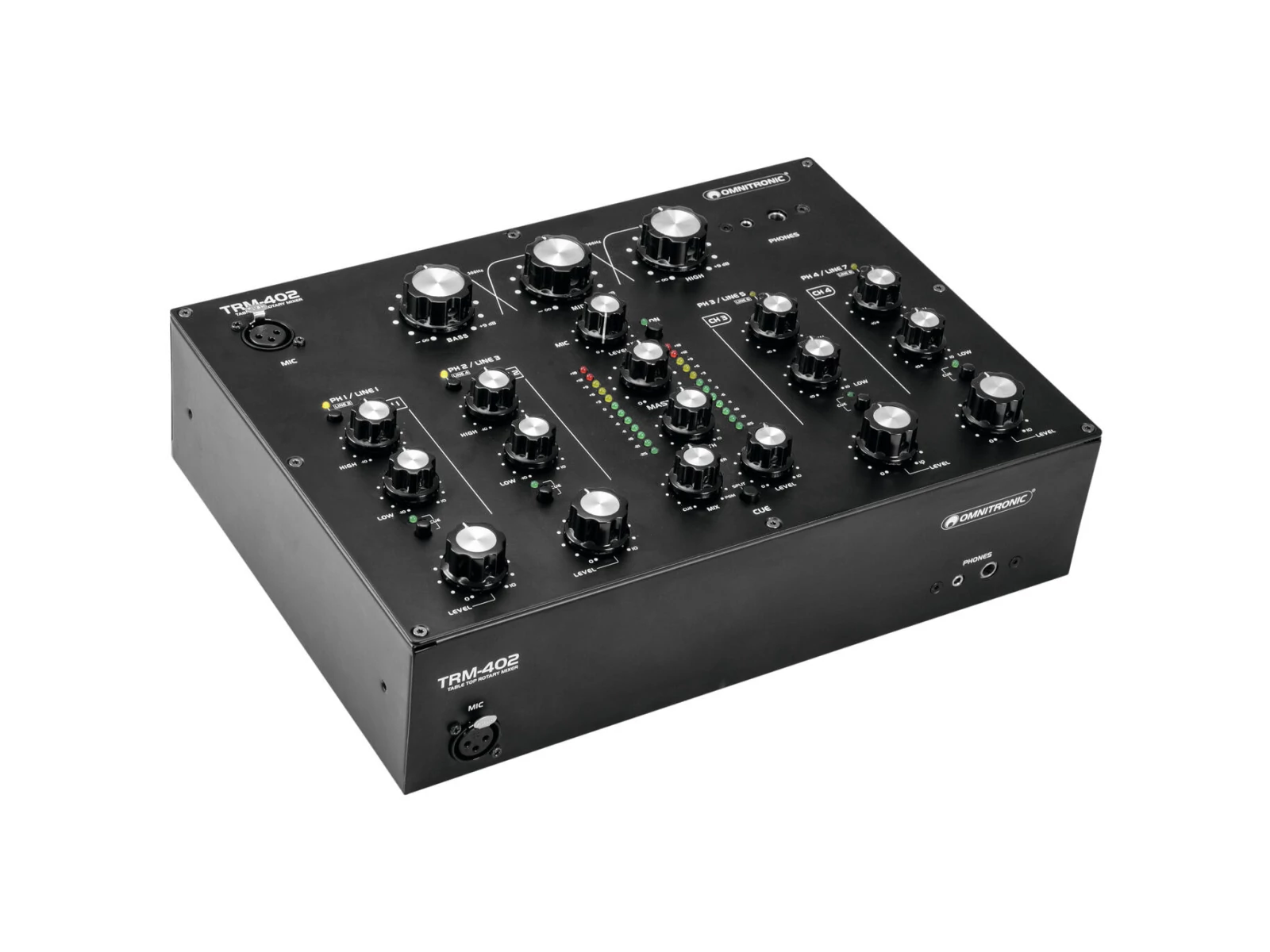 - Classic rotary mixer with 4 input channels and integrated 3-band frequency isolator for DJs