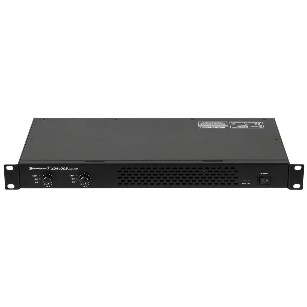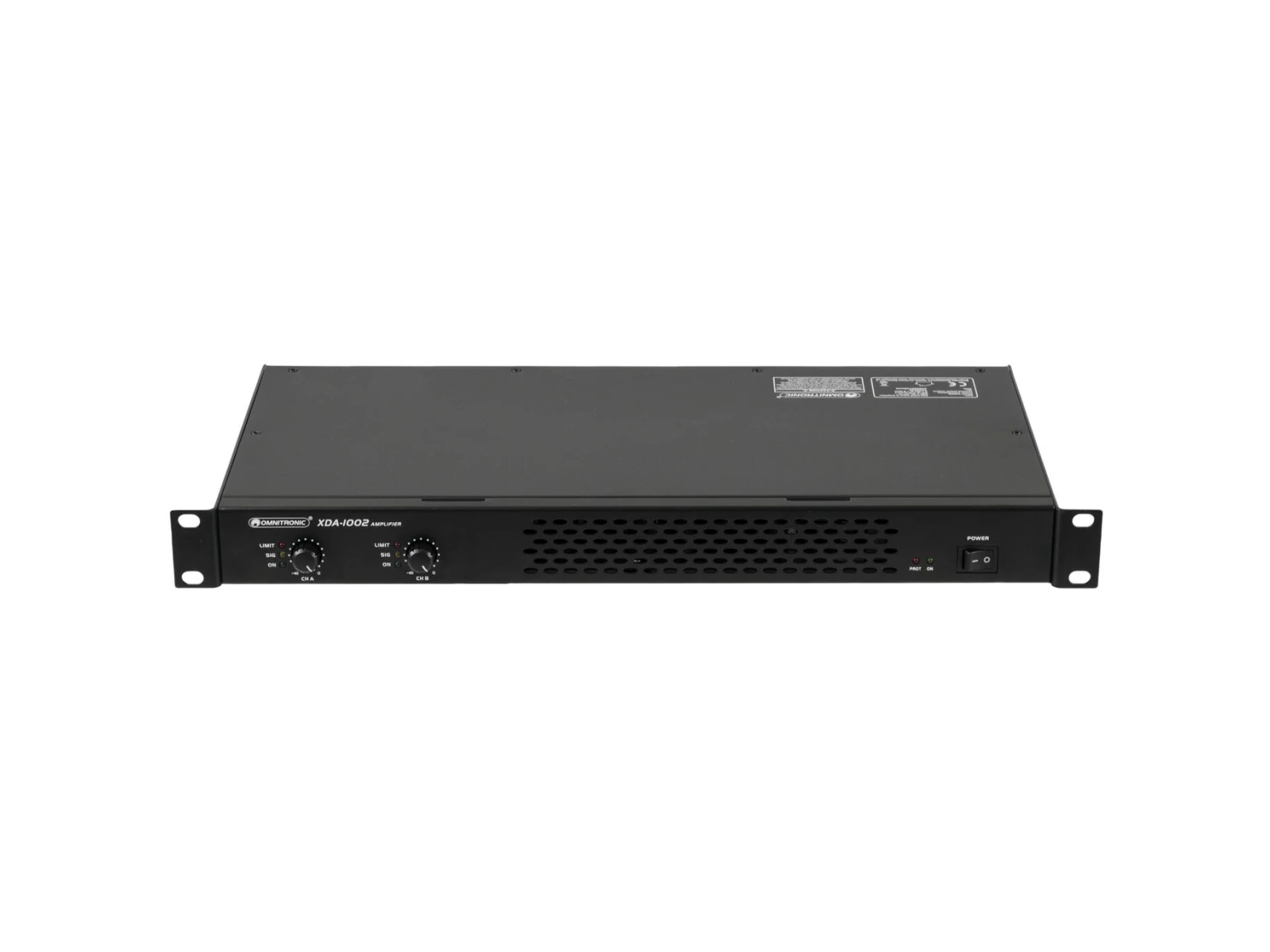 Control elements | Power switch, level control per channel, mode switch (stereo/bridged), groundlift selector |