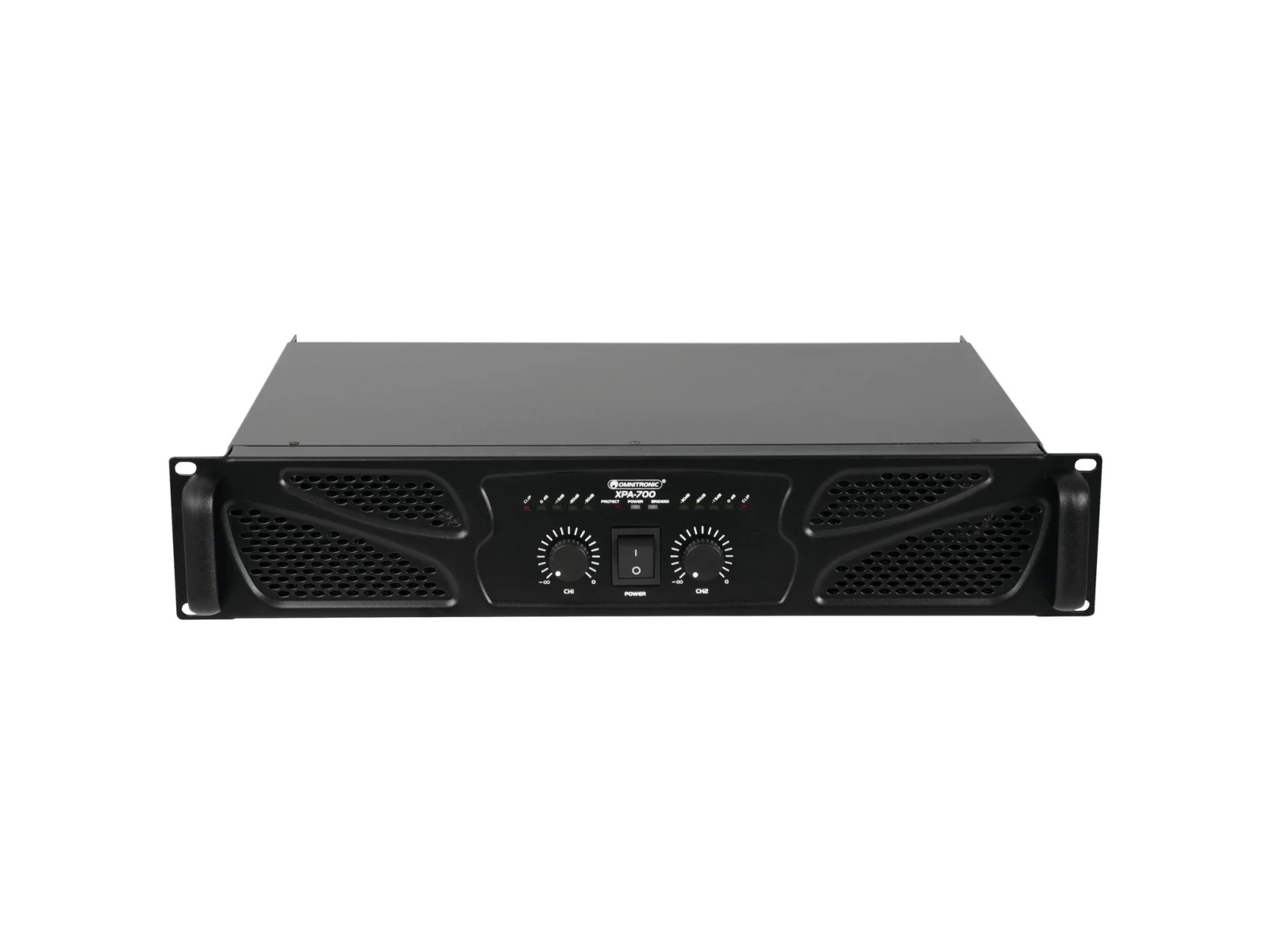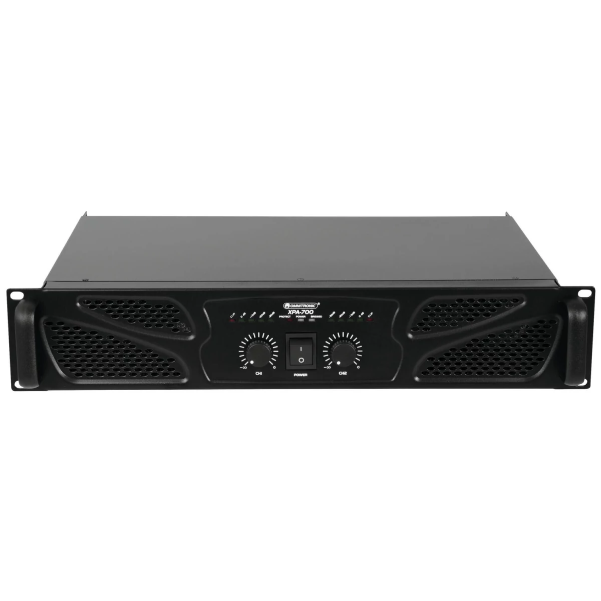 - Each channel with LED for activated protective circuit (protect) and output meter with clip LED