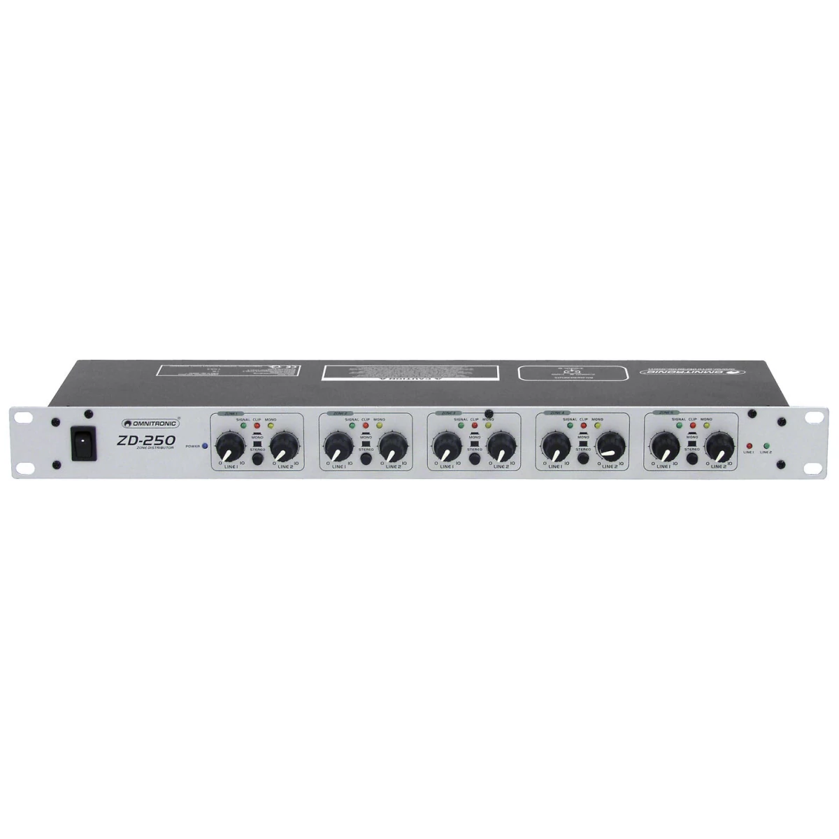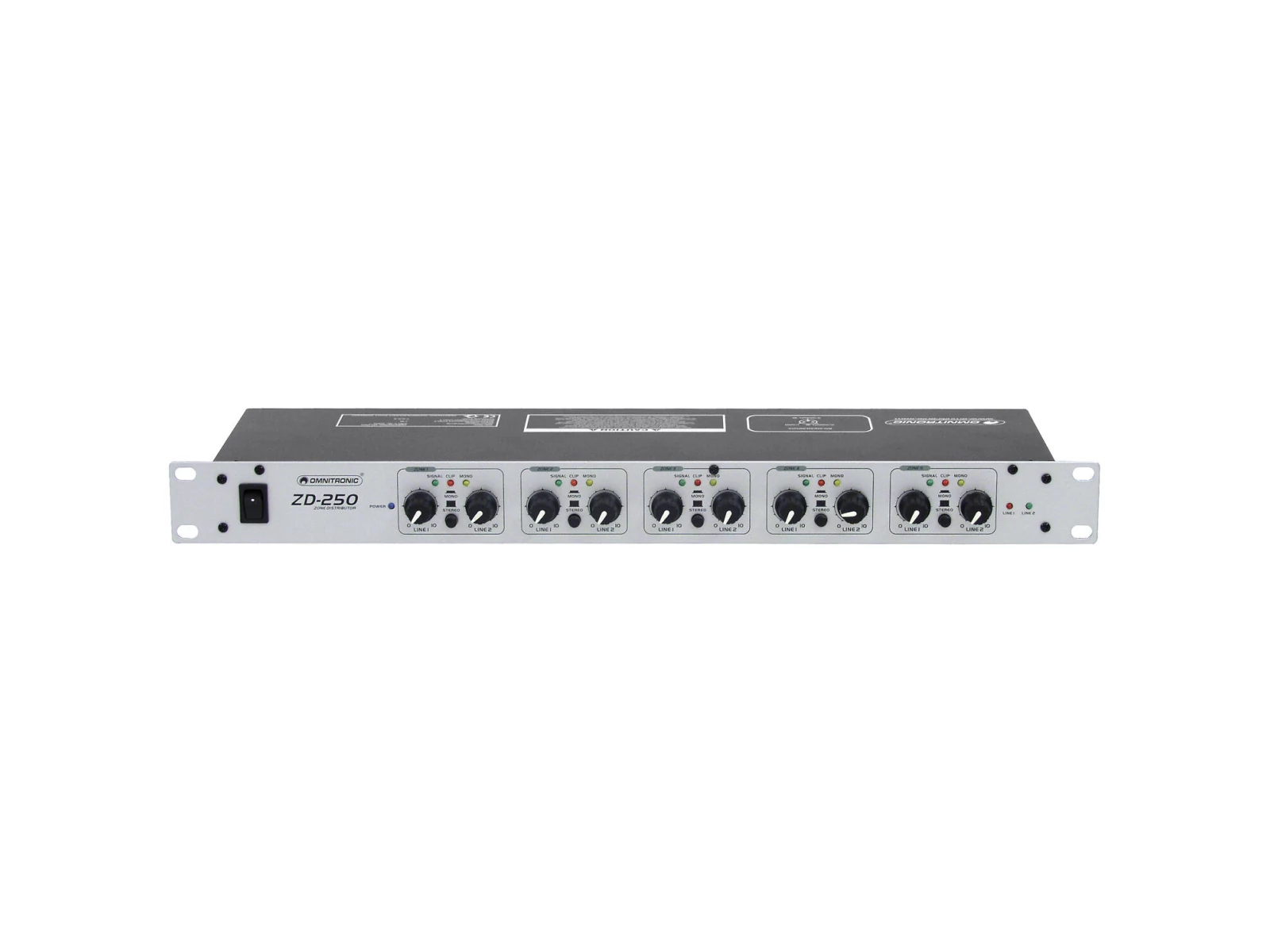 - Each zone with level controls for both inputs and mono switch