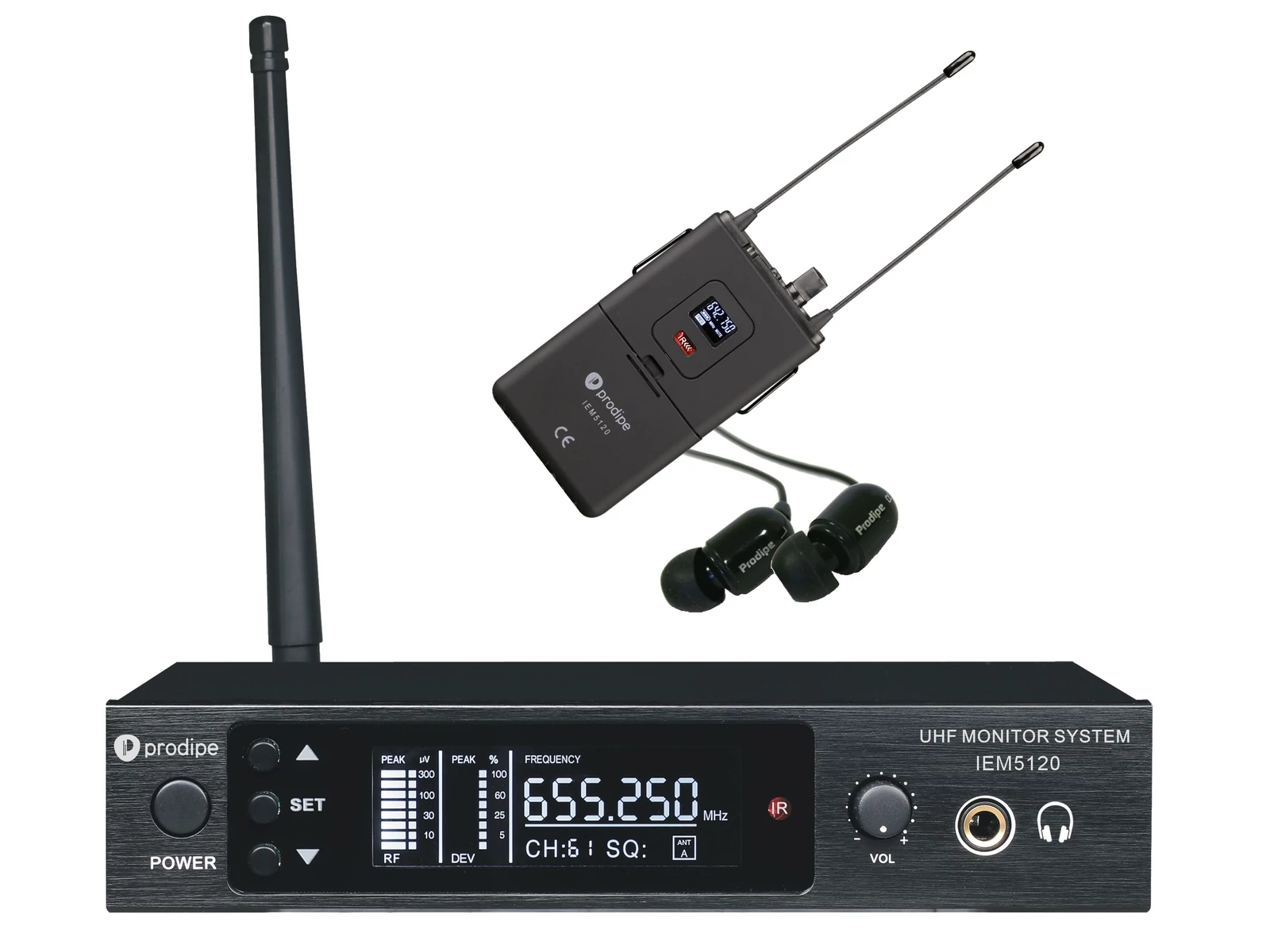 A Prodipe IEM 5120 személyi monitor szett, 100 frekvencia egyidejű használatát teszi lehetővé akár 10 másik IEM 5120 rendszerrel egy időben.
