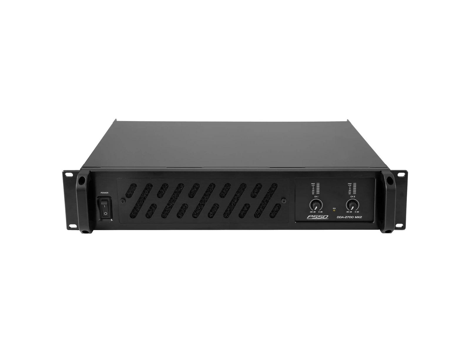 | Control elements | Power switch, level control per channel, Input sensitivity switch, mode switch (stereo/parallel/bridged) |
