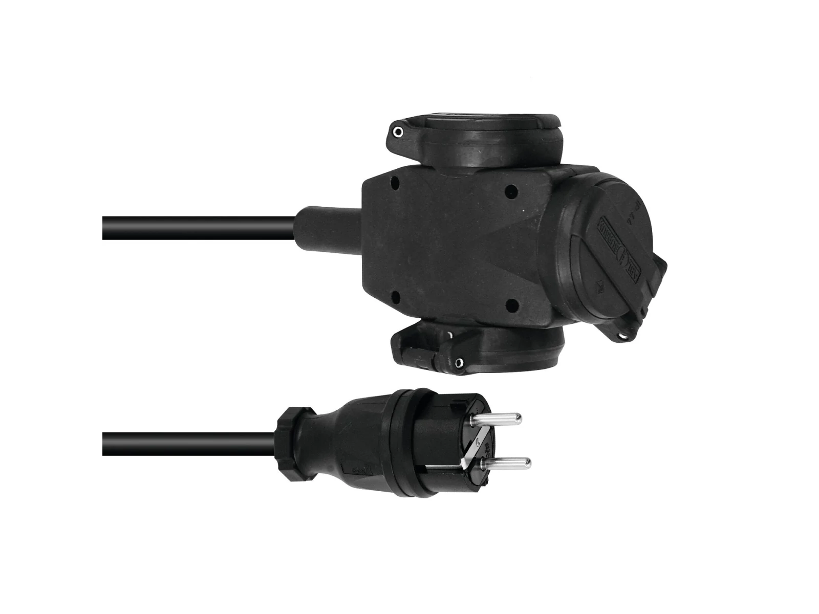 - Heavy rubber coating with rubber safety plug and 3-fold connector