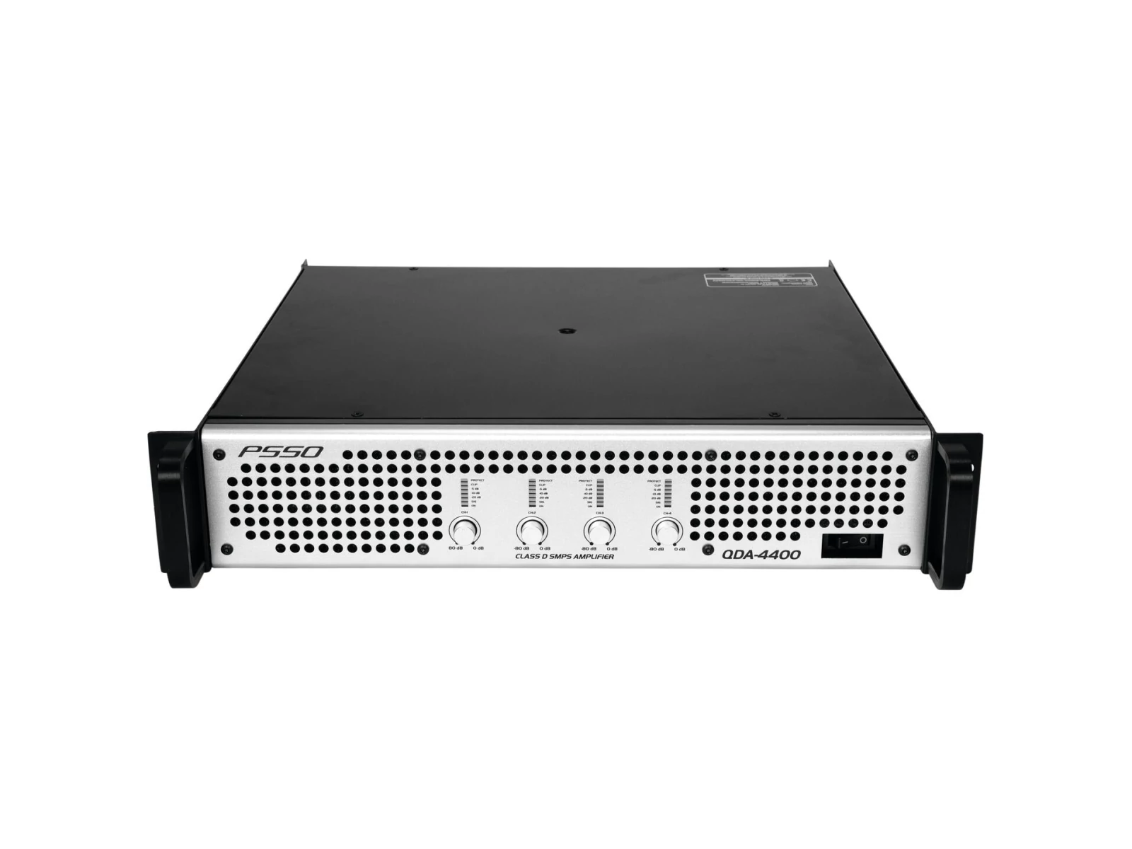 Class D multi-channel PA amplifier with SMPS, 4 x 1100 W RMS (4 ohms), 4 x 650 W RMS (8 ohms)