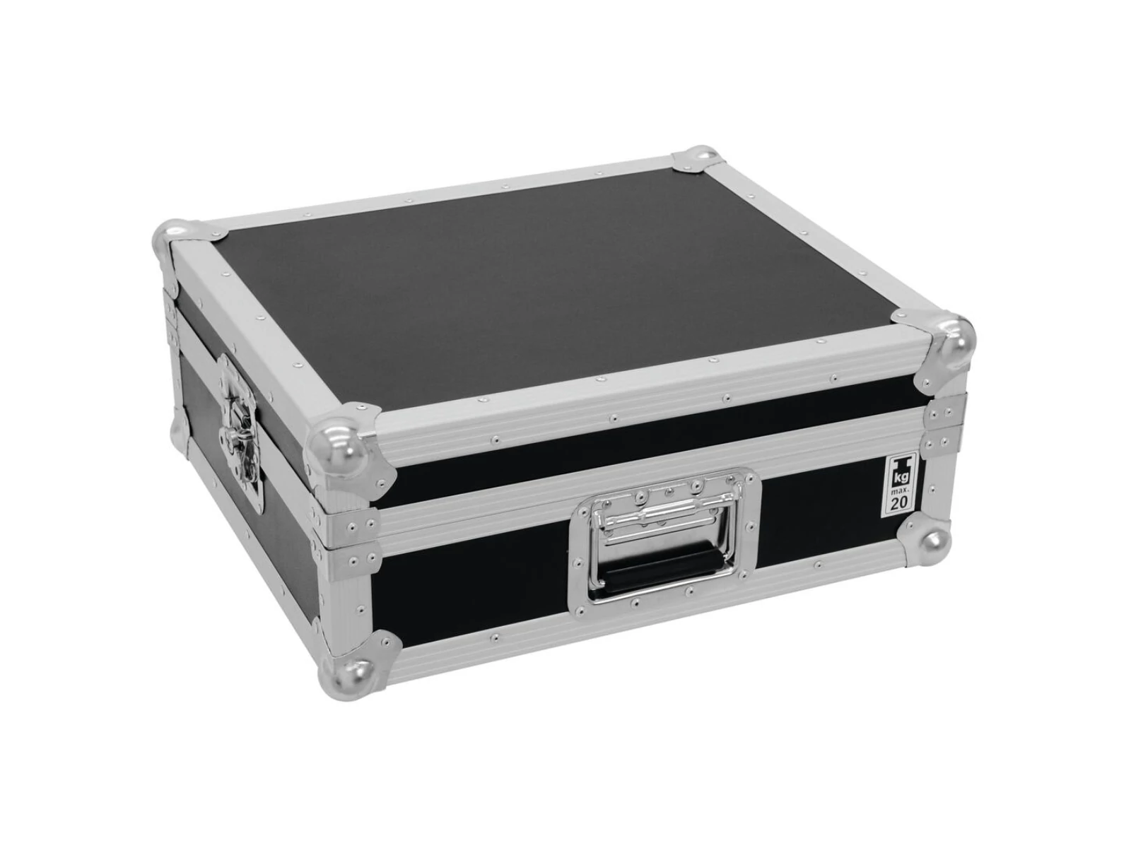 Flightcase for one turntable (up to 450 mm width)The foam padded Roadinger Flightcase offers you space for a turntable without cover up to a width of 450 mm.The high-quality finish with multi-layered glued wood and four steel-reinforced rubber feet provide for the stability of the Roadinger turntable case. In addition, the flight case has two lockable butterfly locks - so your turntable is always safely stored.The maximum load capacity is 20 kg.