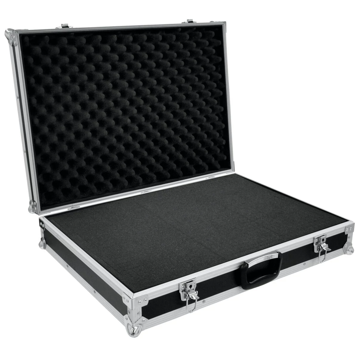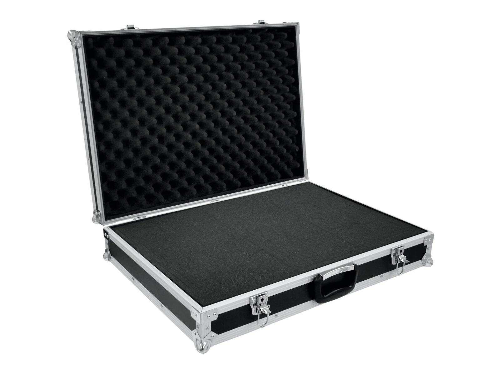 Flightcase with flexible padded interior and 650 x 450 x 105 mm (inside dimensions)ROADINGER Universal Case adapts to any shape of device because of its integrated flexible foam insert. The aluminium profile frame with rounded corners gives the ROADINGER Case the necessary stability. The robust folding handle and the two lockable snap locks make sure that your equipment is always safely stored. The two fitting keys are included in the package.The maximum load is 20 kg.